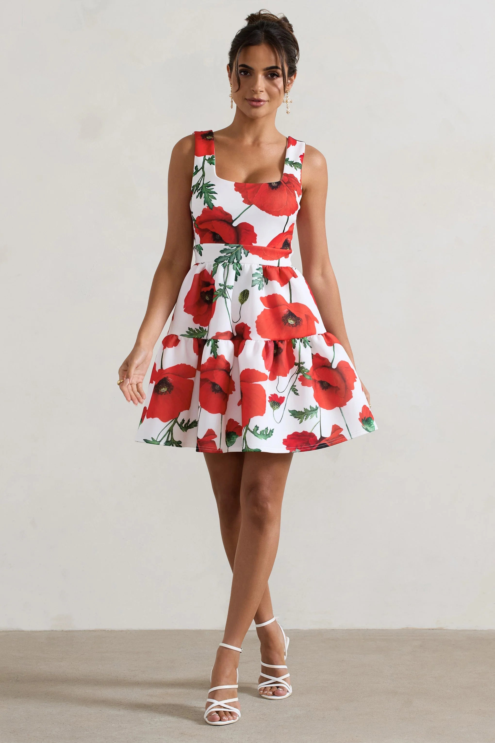 Get garden party ready in Alia, our poppy print mini. Crafted in a premium scuba foam, this floral mini dress is defined by a flattering scoop neckline and a tiered, volume hem. Compliment Alia's rich hues by styling yours with some glistening gold accents at your next event.