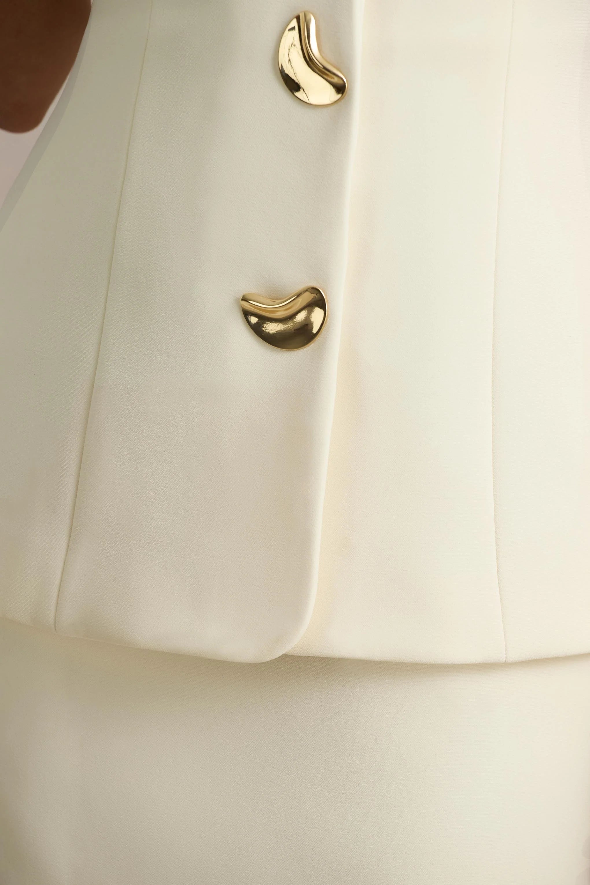 Chic and sophisticated, Angel is your shortcut to understated glamour. Crafted from our premium cream crepe, this mini-length design is cut to flatter with its clean square neckline and sleek silhouette. Luxe gold detailing elevates the look, bringing a touch of refinement to this modern classic. A versatile piece perfect for everything from rooftop cocktails to elegant soirées.