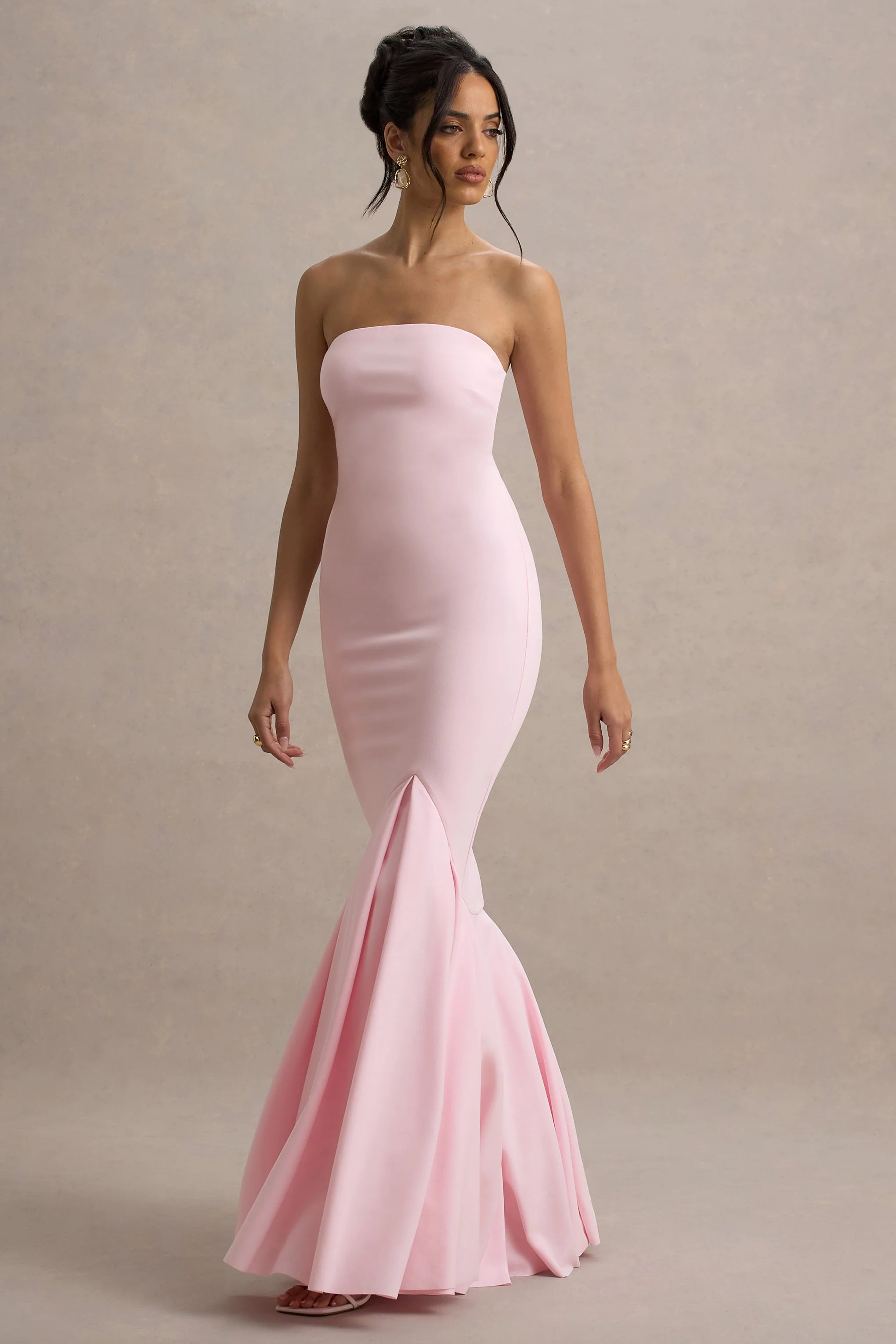 What's not to love about our classic Angela maxi dress? Cut in our premium pink scuba crepe, this piece features a striking and flattering fishtail silhouette as well as a stunning bandeau neckline. Angela is the perfect blend of comfort and elegance, making it a staple for your occasion wardrobe.