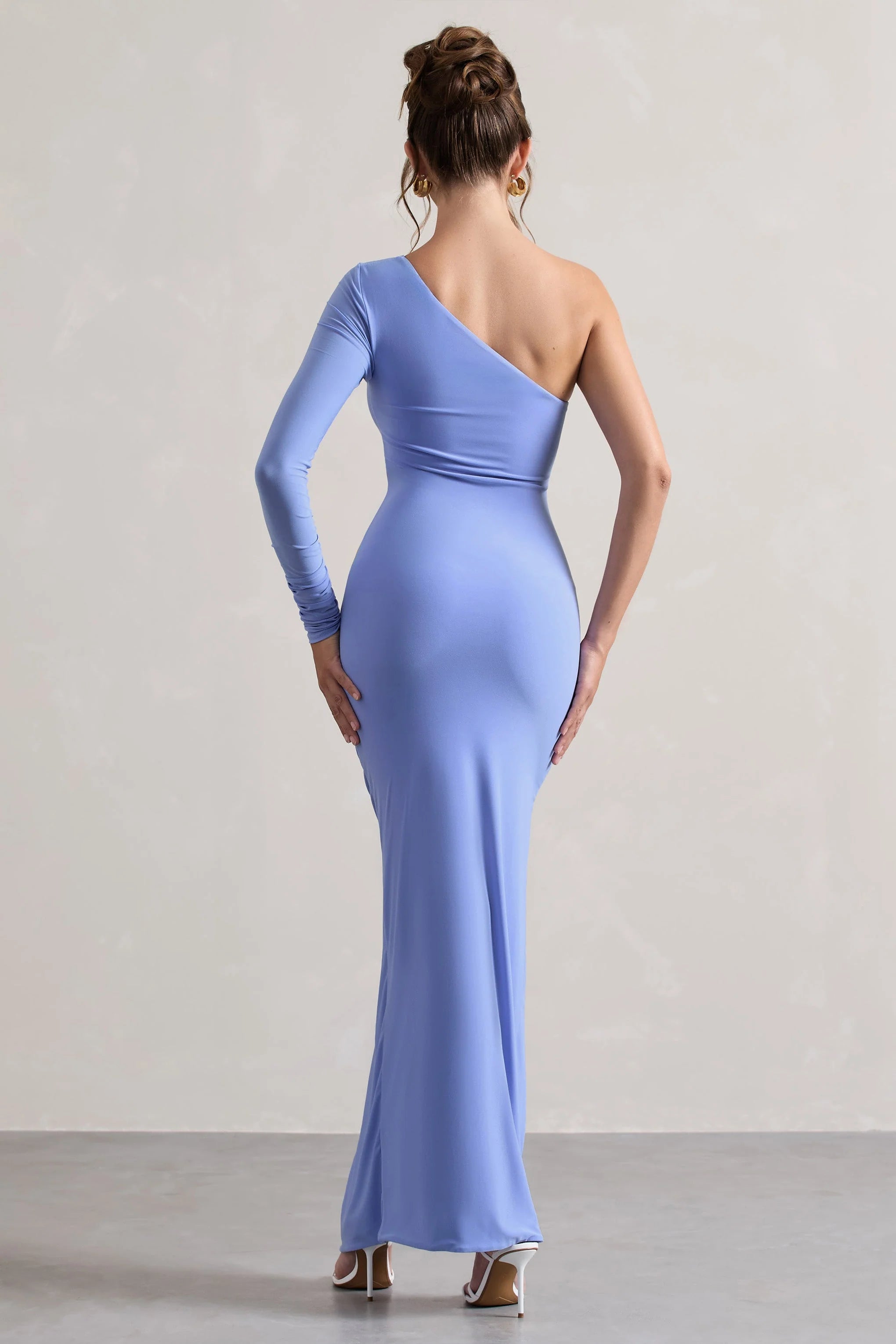 Our Anima dress has been cut from our premium smooth jersey fabric that effortlessly hugs your curves and accentuates your frame. With an asymmetric neckline and single sleeve, what defines this dark pale blue maxi is flattering ruching highlighted by an adjustable drawstring.