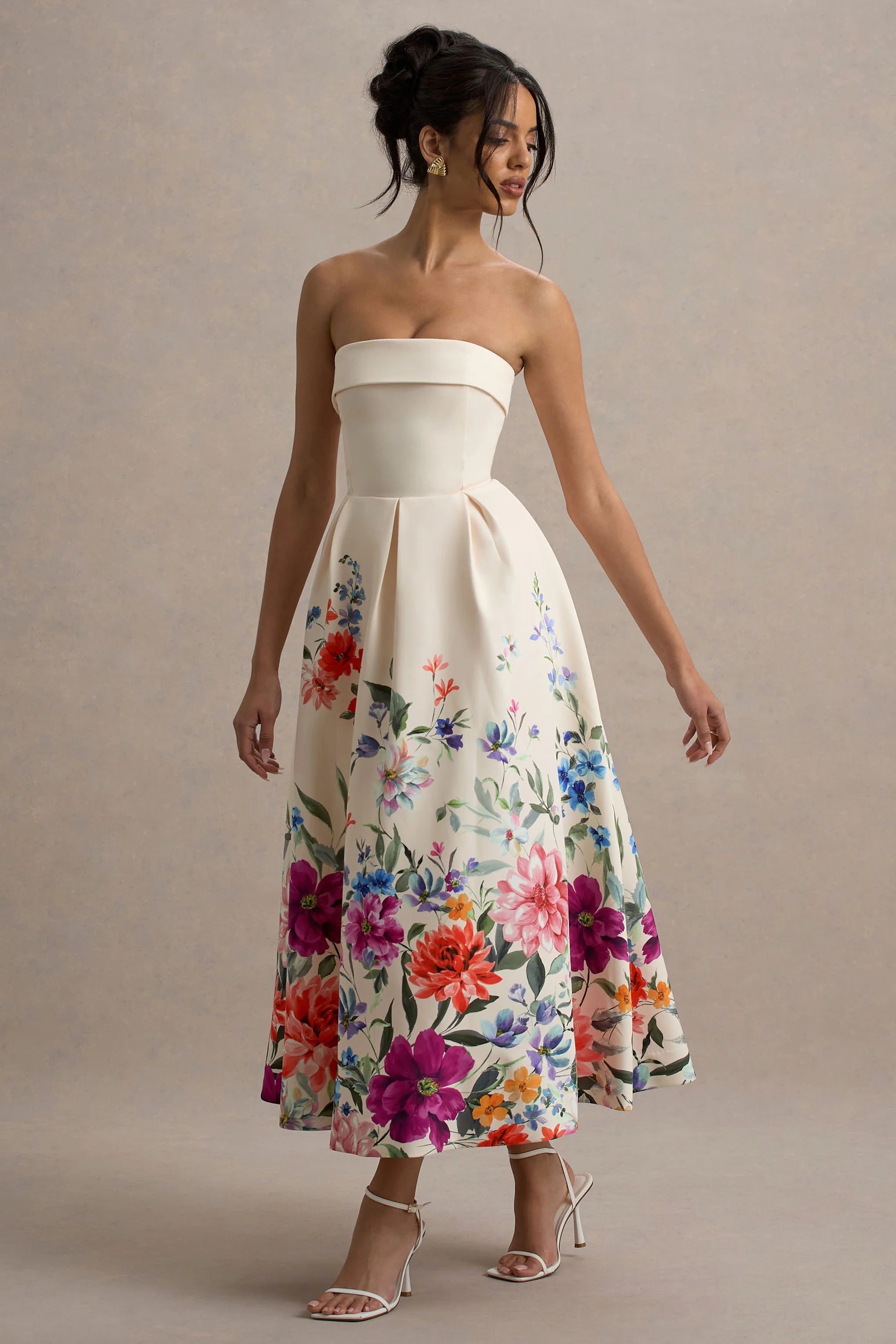 You name the occasion, we have the perfect dress. Crafted in a light pinkfloral shade of our premium stretch crepe, Annalise effortlessly compliments every skin tone. Beautifully flowing with a cinched in waist, this midi dress boasts a pleated skirt that creates an elegant sense of movement. For a timeless race day look, try styling yours with some simple gold earrings and strappy stilettos.
