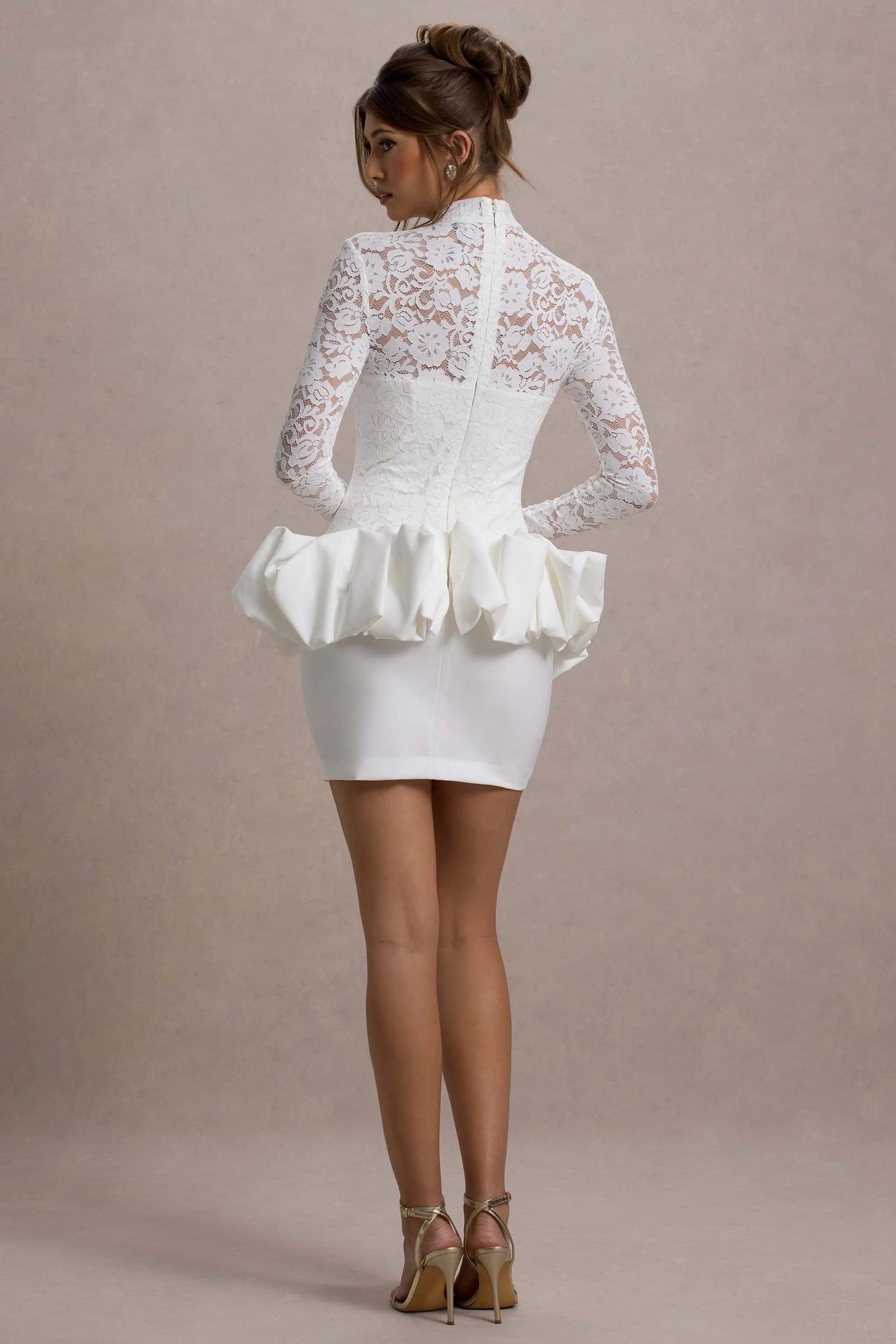 Made for high impact, gift yourself some luxury this season with Antheia. Expertly crafted in a premium crepe and lace, this LWD oozes sophistication from start to finish. Defined by a demure high neckline, long lace sleeves and boned corset bodice for the perfect cinched fit, theres so much to love with this premium peplum mini.