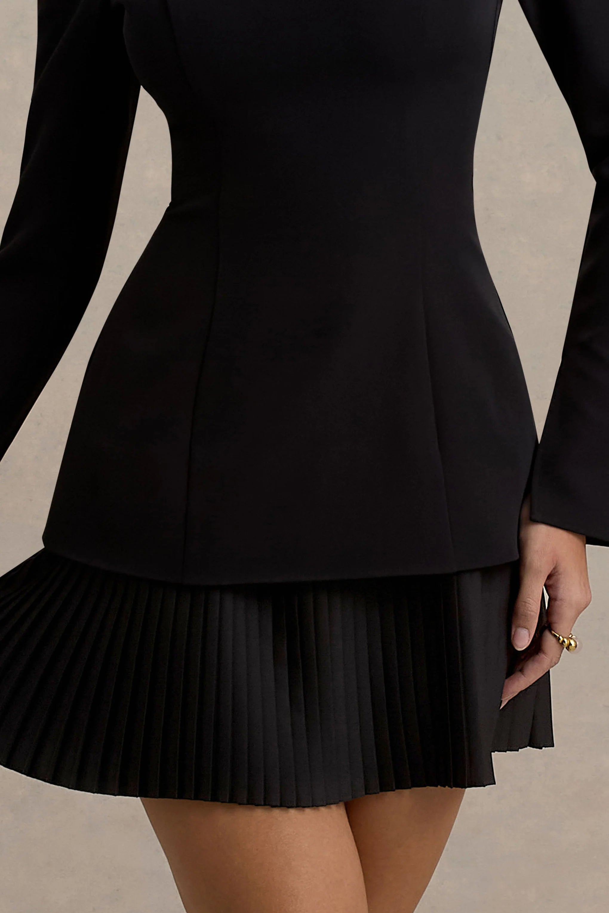 Are you searching for a chic mini upgrade? Well, meet Athena, our pleasing pleat designed dress that's perfect for every event in the city this season. Crafted from a black premium stretch crepe, the style moves where you do, offering comfort and refinement all night long. Style her with a pair of dazzling earrings and a tousled bun for the best finishing touch.