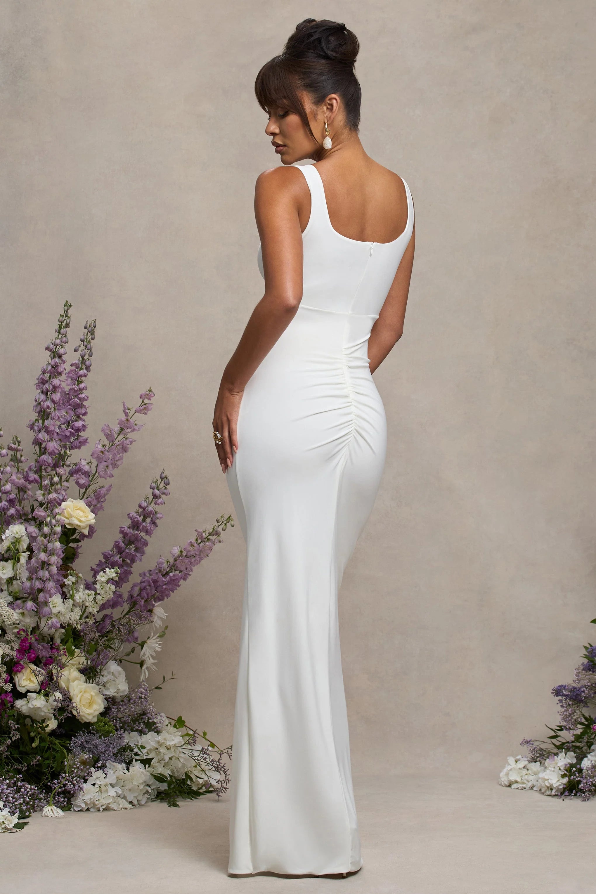 Showcase your bump at that upcoming baby shower in our figure-framing Avril maxi dress. Designed in a bright white shade of our signature stretch jersey, this maternity maxi dress features a square neckline with wide shoulder straps and a split full-length skirt.