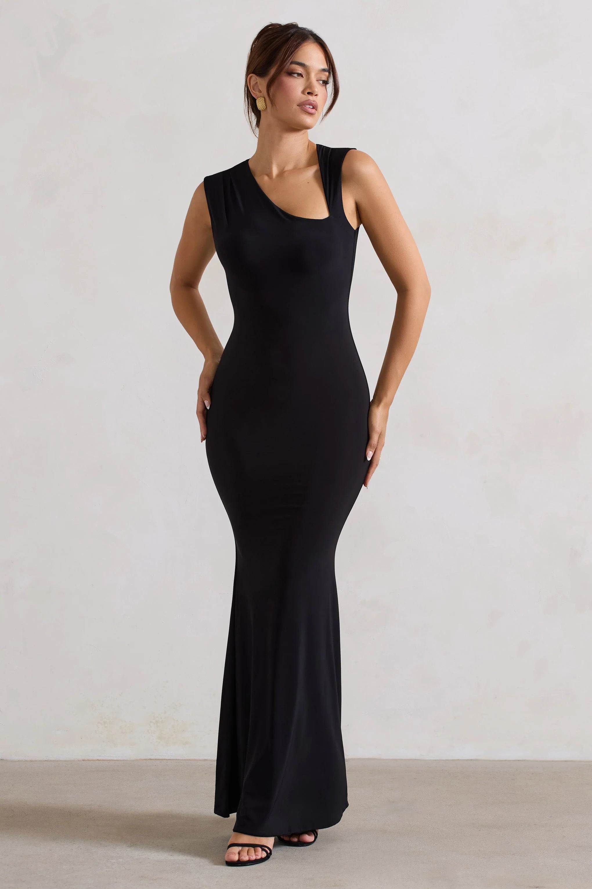 Compile a wardrobe of elegant pieces starting with a maxi like Behind The Scenes. Cut to a body-contouring silhouette of our premium stretch jersey, this staple black maxi dress is transcended by a contemporary cut-out and opulent fishtail skirt. For an elevated prom ensemble, try pairing this piece with statement earrings and a tousled bun.