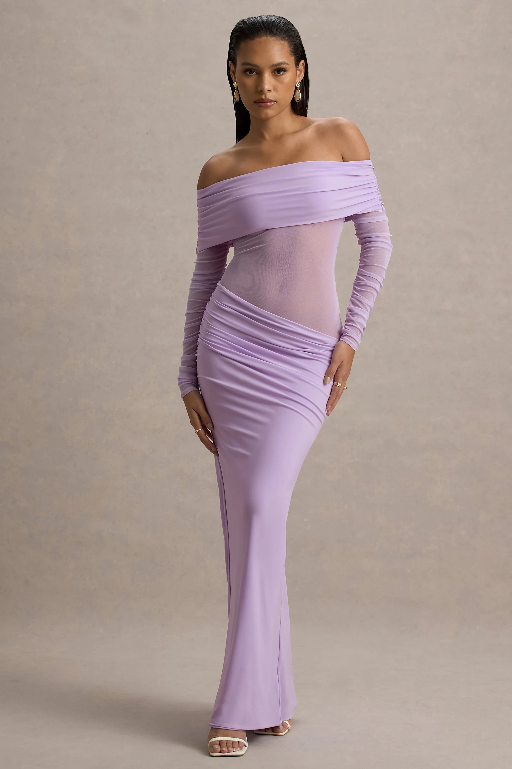 Get ready to turn heads at every event with our latest maxi Belamour. Crafted in our premium lavender jersey, this floor-sweeper features intricate mesh details as well as an exquisite bandeau neckline for the perfect blend of elegance and contemporary charm. Style yours with sleek heels and dance the night away, making every moment memorable.