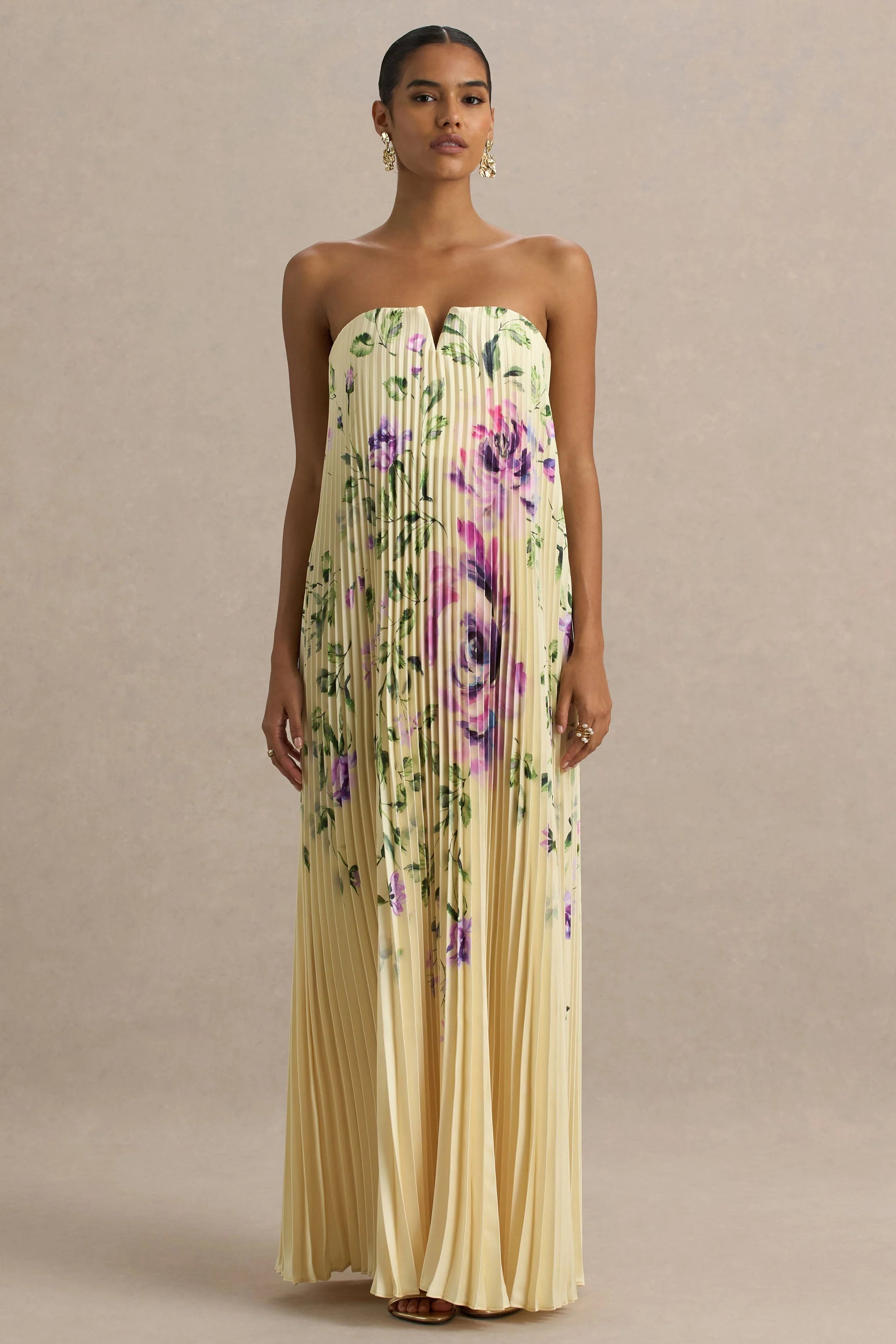 Bergamot is the ultimate occasion dress this season with a unique blend of an effortless silhouette with polished pleats. Crafted from our premium pleated stretch satin, the maxi dress boasts a flirtatious v-wire bandeau neckline that's perfect for all your dinner dates and drinks with the girls. Take each step in your stride knowing you look as great as you feel comfortable with this loose fitting gown that skims over your curves graciously.