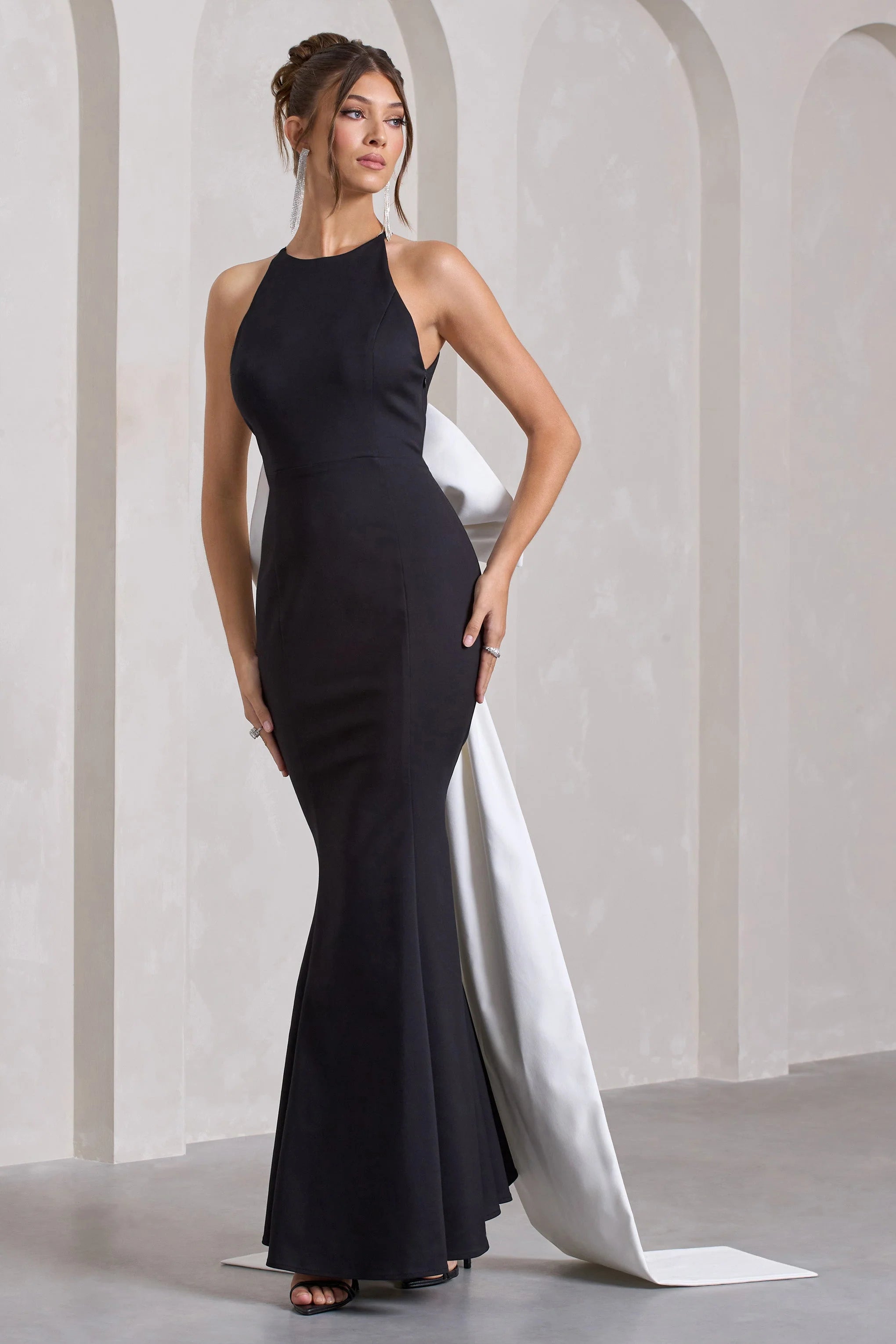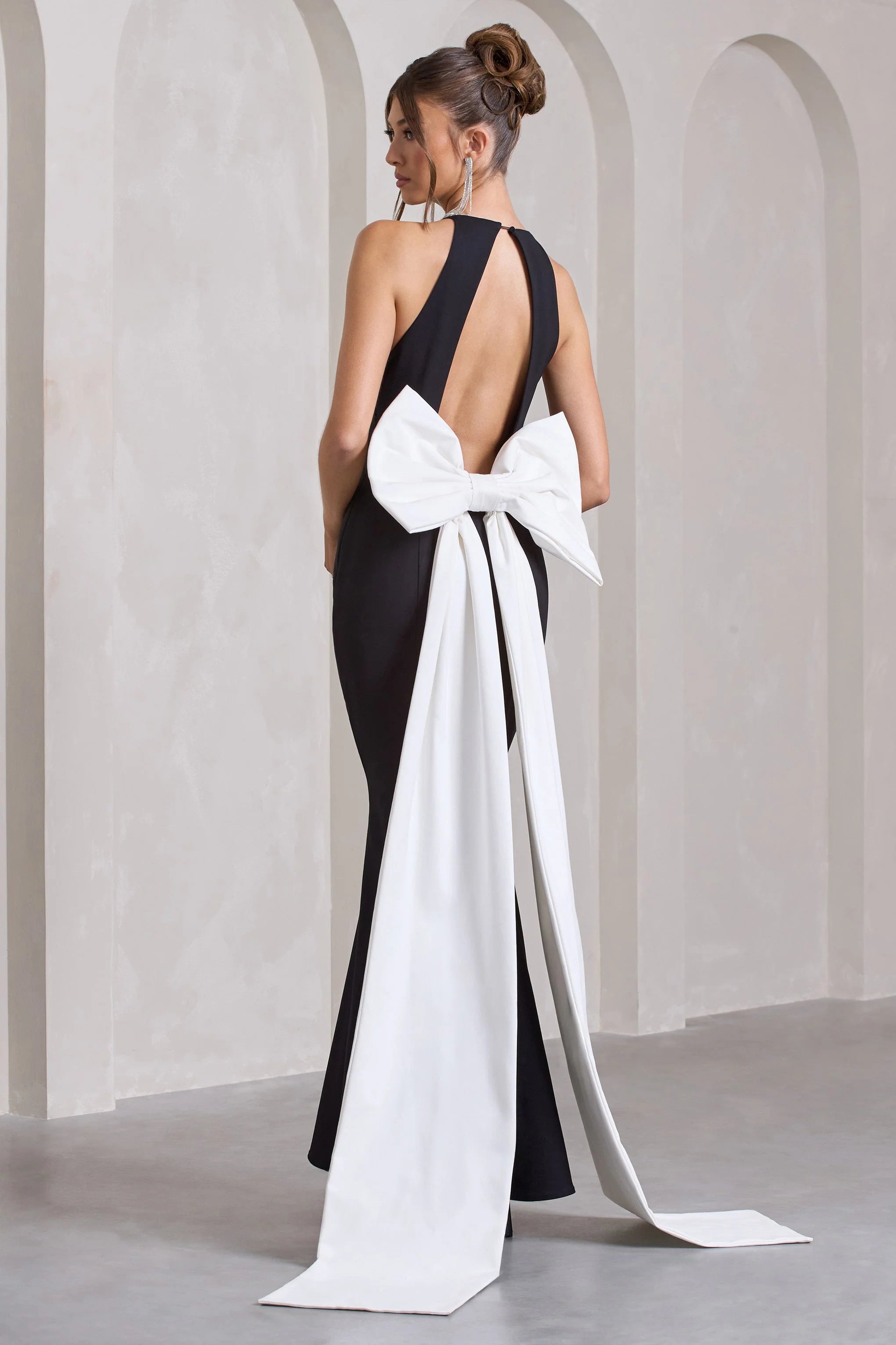 Treat yourself this party season with a high impact maxi like Bestow. Cut from our body-contouring cotton blend, this black maxi dress boasts a racer neckline, alluring open back and bold contrasting bow. With a statement elongated train, this floor-sweeper is perfect for any black tie event.