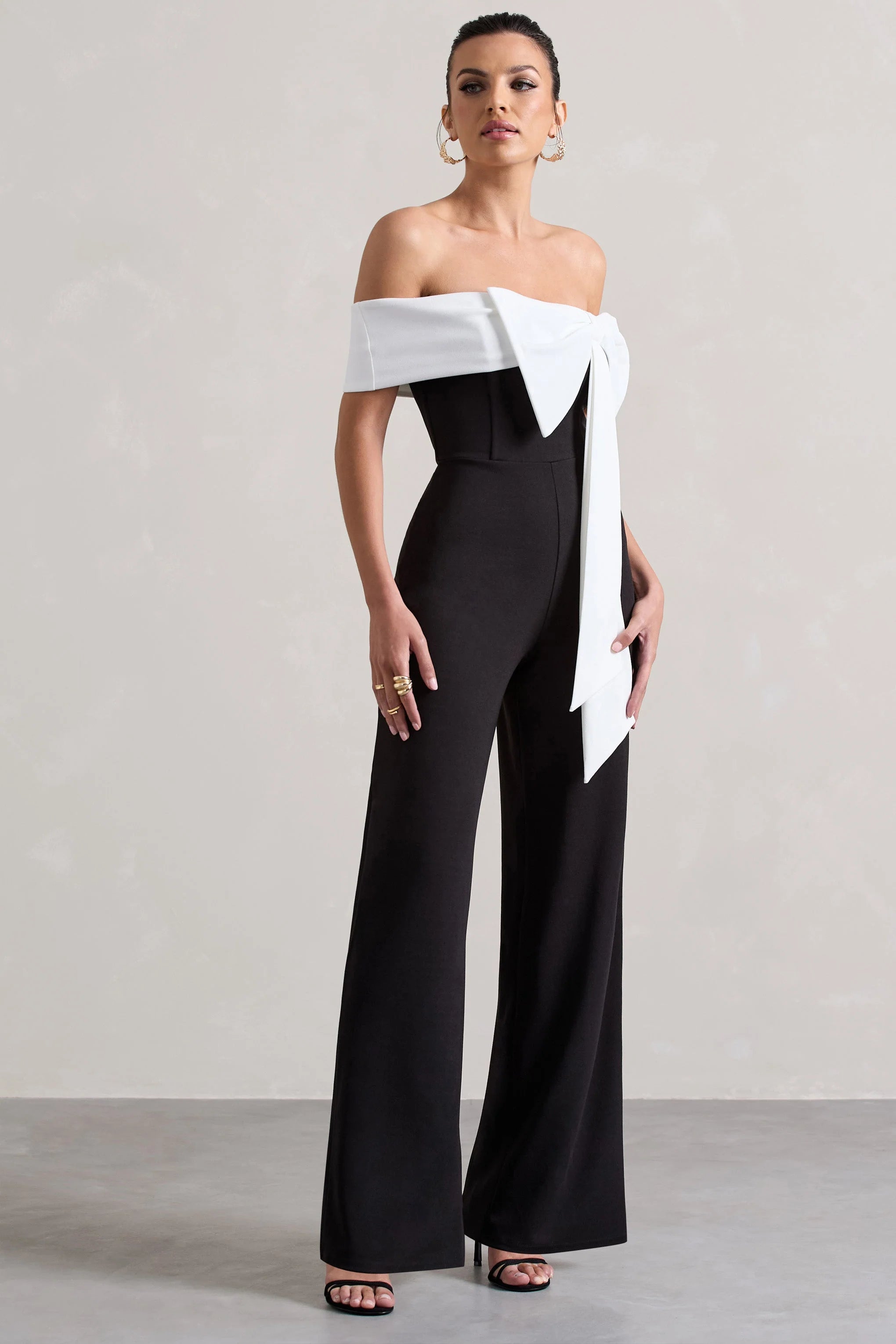 Off-shoulder is never off-season, and our lavish jumpsuit Bower proves that. Designed in a flattering scuba crepe, this straight-leg jumpsuit boasts a contrasting white bardot neckline highlighted by an artful bow detail. From graduations to dinner dates, exude elegance in Bower.