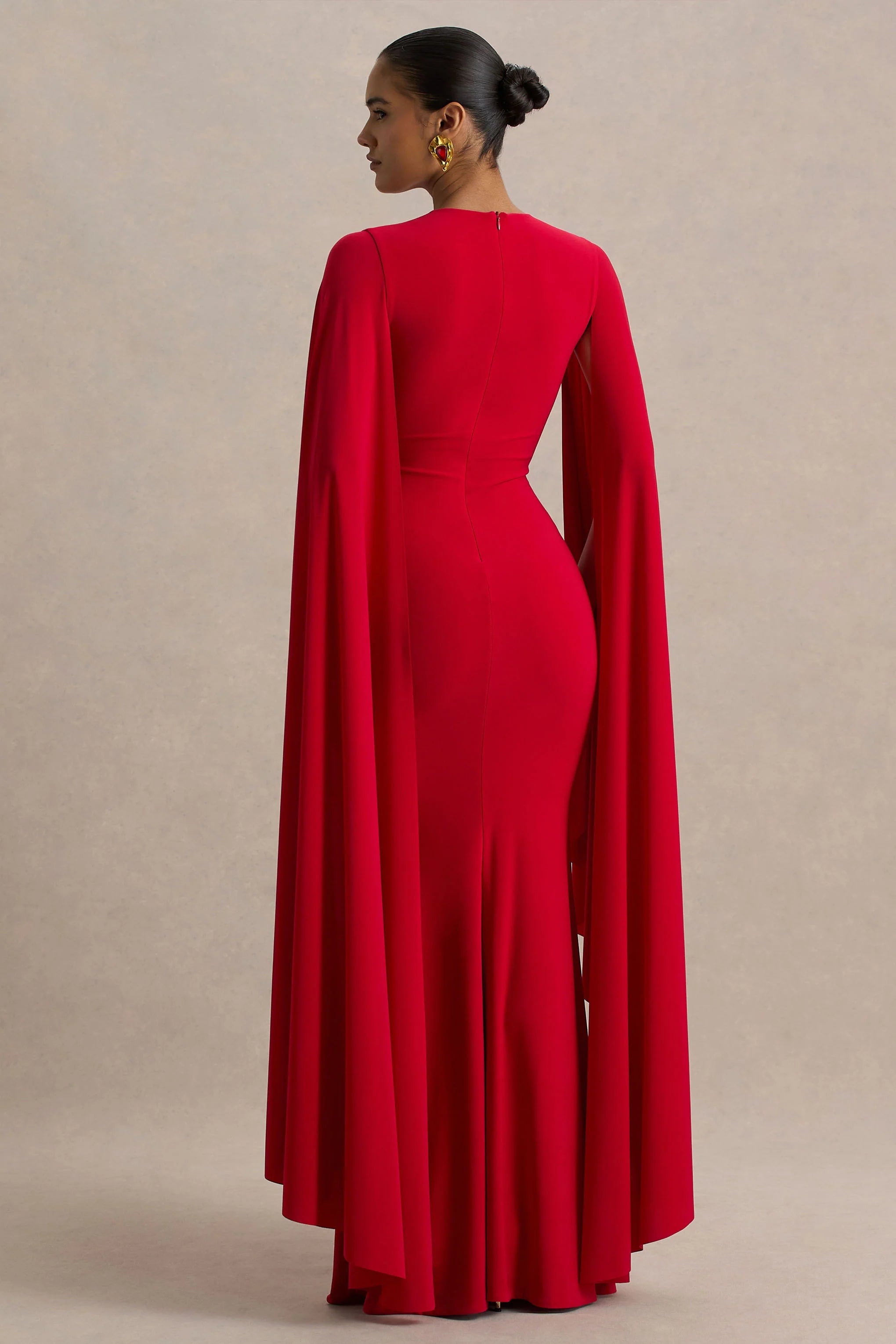 For a look that will exude nothing but elegance, Briony is the gown for you. Designed in a bold red hue of our premium stretch jersey, this dress seamlessly sculpts your curves. Finished with a chic crew neckline and elevated by statement cape sleeves, that add a modern and dramatic flare to this maxi. You're guaranteed to steal the spotlight at your next black tie occasion with Briony, paired with sleek heels and gold accessories.