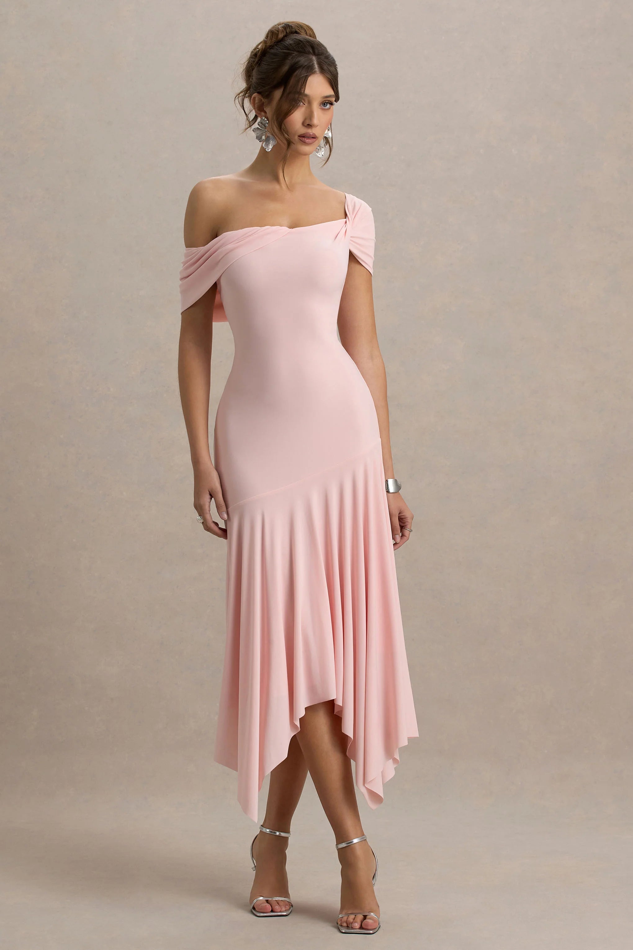 Whether you're searching for the perfect wedding guest dress, garden party look or baby shower staple, Castor is your answer. Crafted from our premium stretch jersey in a subtle shade of pink, this asymmetric midi will see you through the season with grace and class.