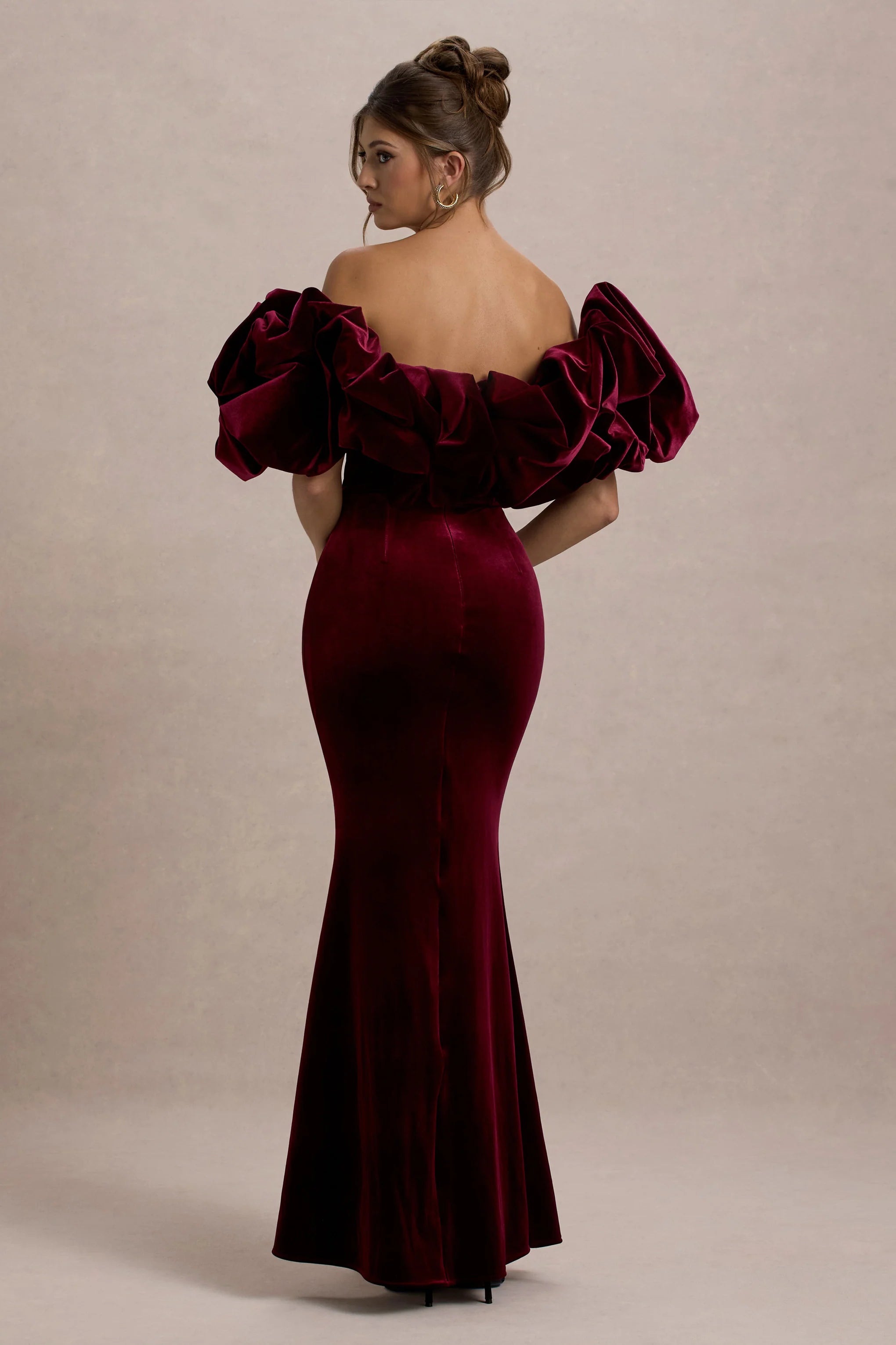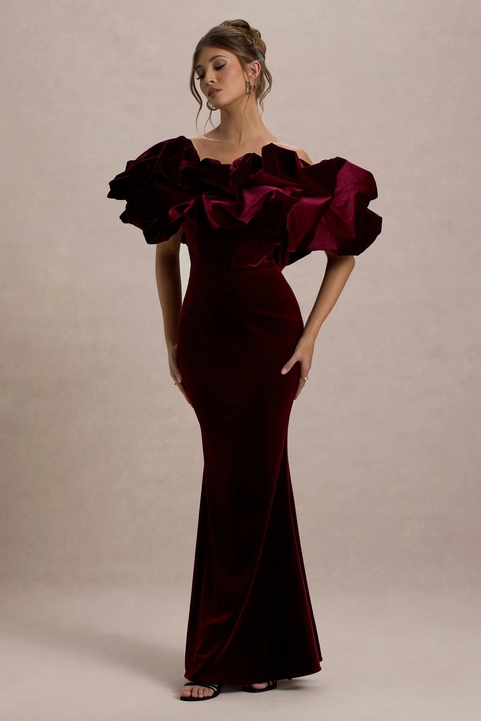 Black tie events call for a dress like Cecily. Expertly crafted in our luxurious port velvet, this floor-sweeper oozes elegance through a contrasting cream neckline designed from our premium ruffled velvet. Compliment Cecily with a sultry red lip and ivory court heels like Catcher for your next gala.