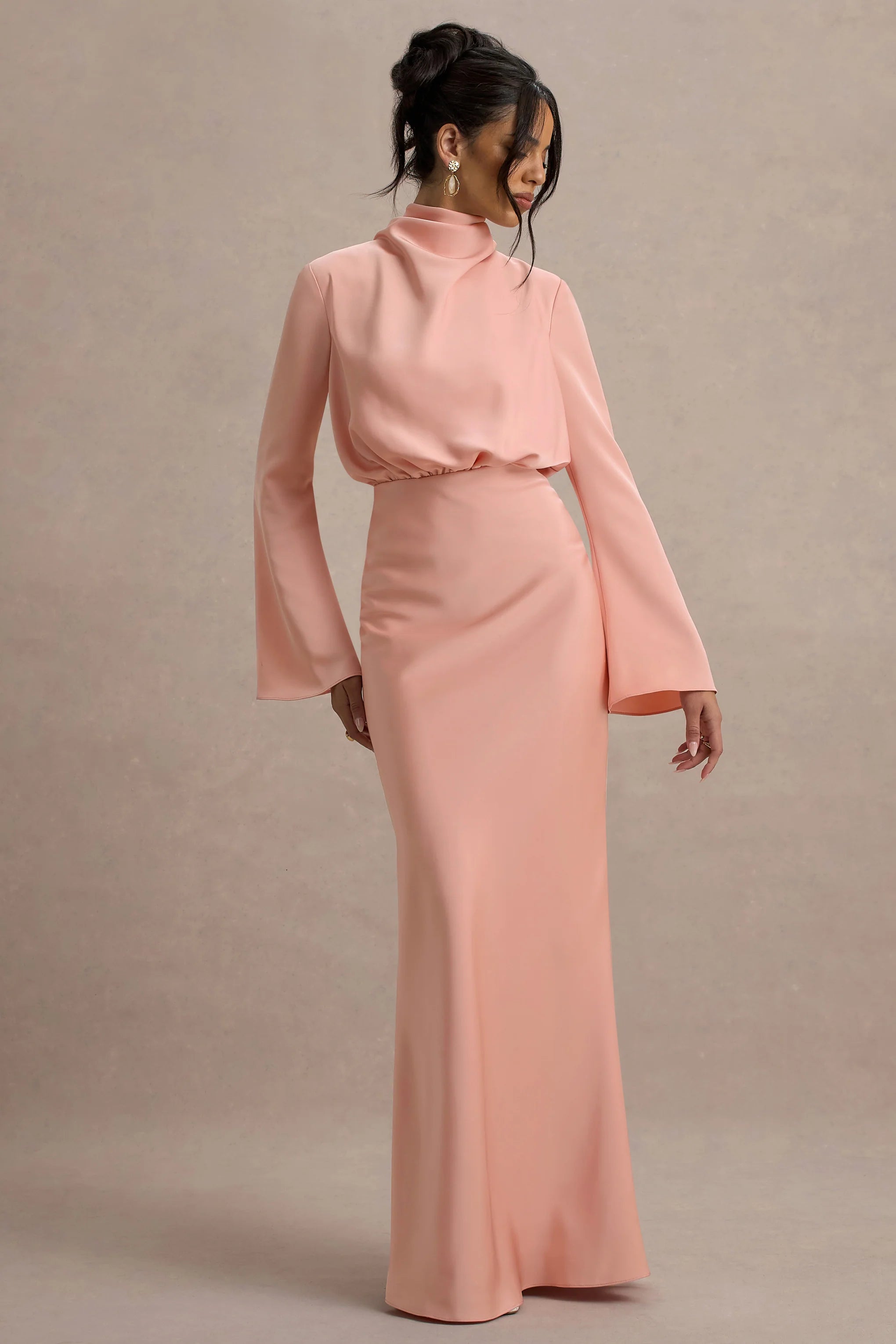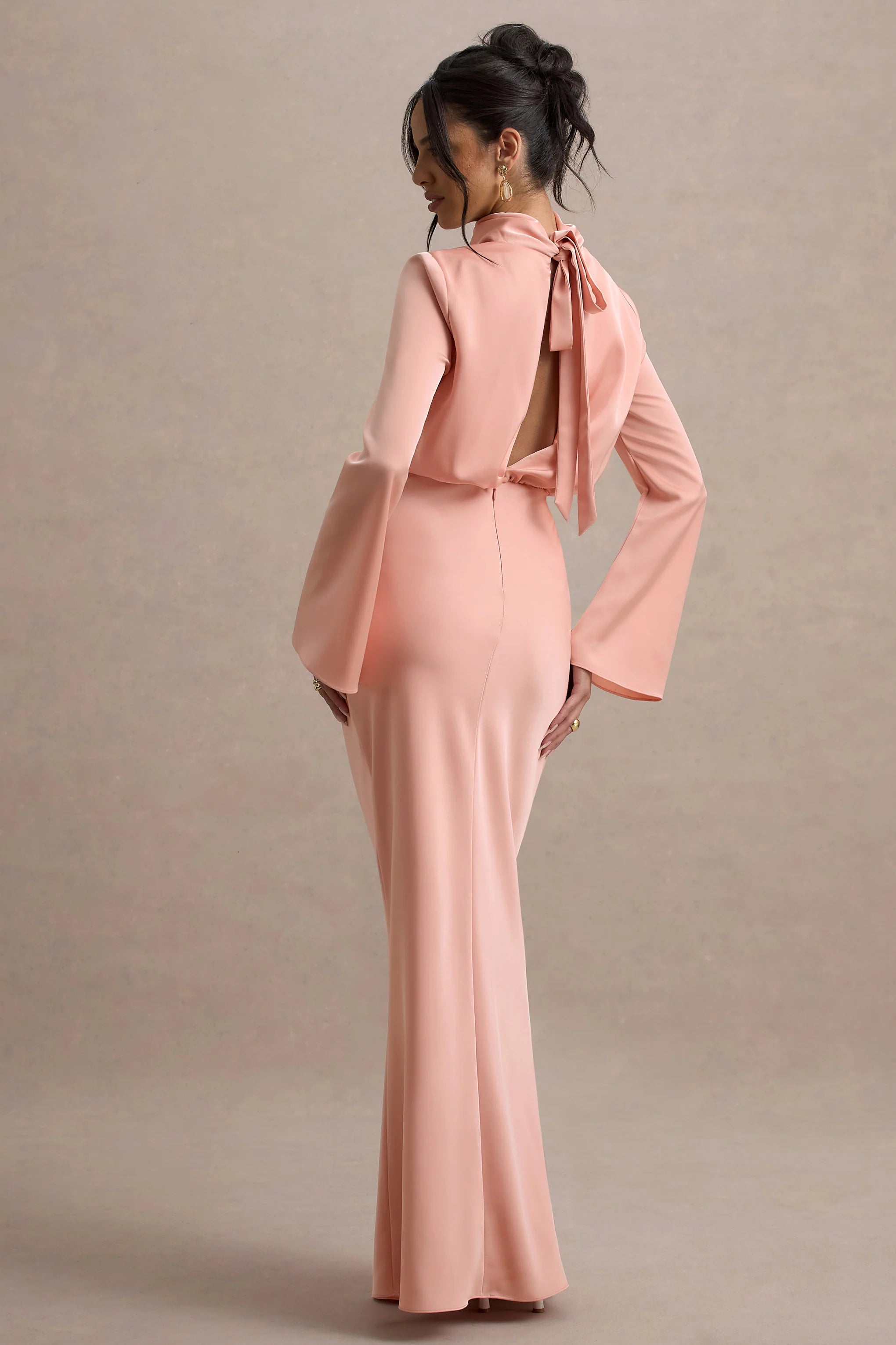 Defined by elegance, our Celina maxi has arrived. Cut in our chic satin, in a delicate shade of light pink. Perfected with fine details, including a gathered waist to flatter your figure from every angle as well a keyhole back detail, with a functional tie. This piece is the epitome of elegance, pair with some dainty jewellery to tie the look together.