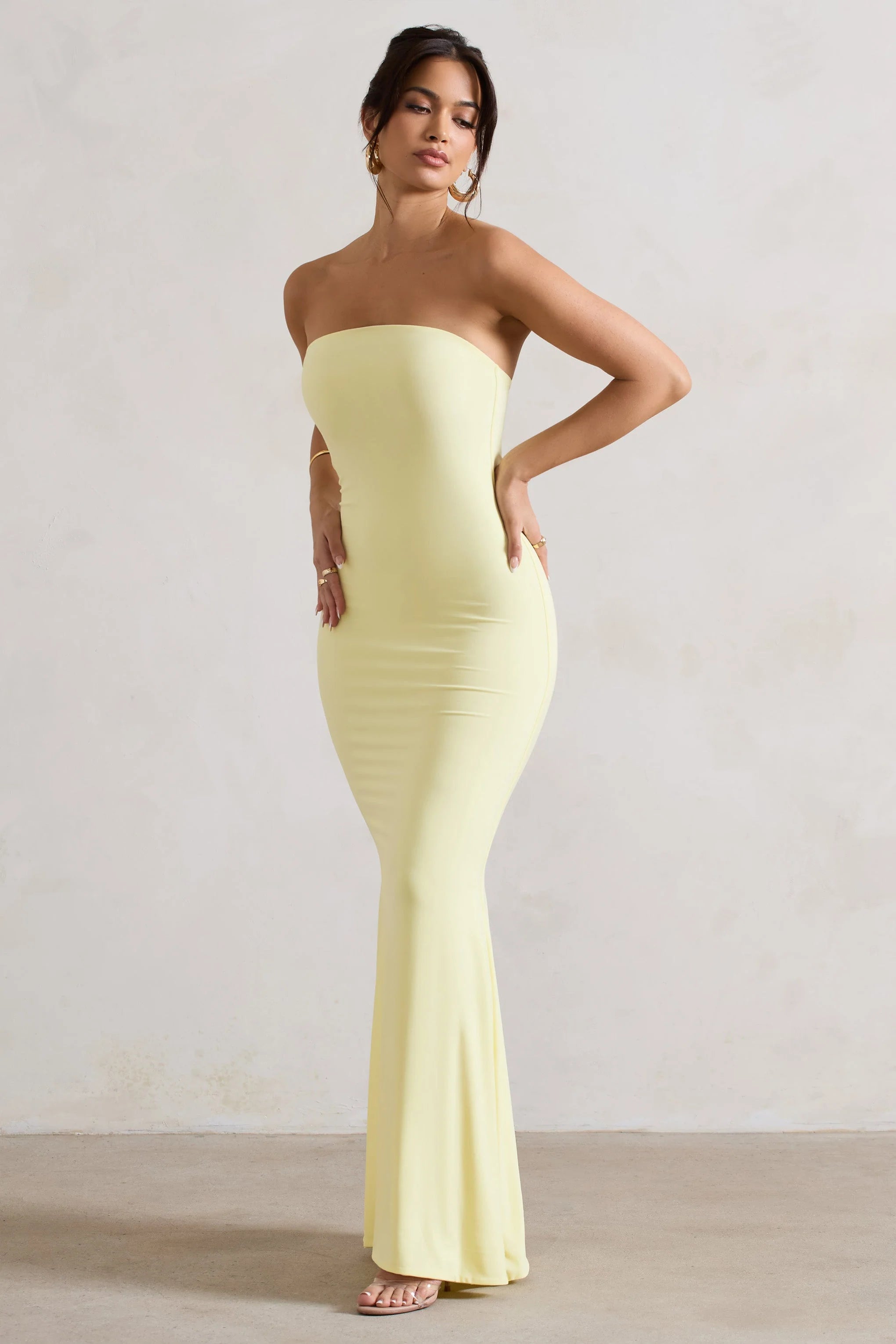 Set your sights on Ceremony, the ultimate wedding guest dress. This lemon maxi is crafted in our premium stretch jersey and showcases a minimalistic silhouette. Ceremony boasts an elegant strapless neckline and flatters your curves. Pair this dress with some simple silver accents and strappy sandals for a look of understated glamour.