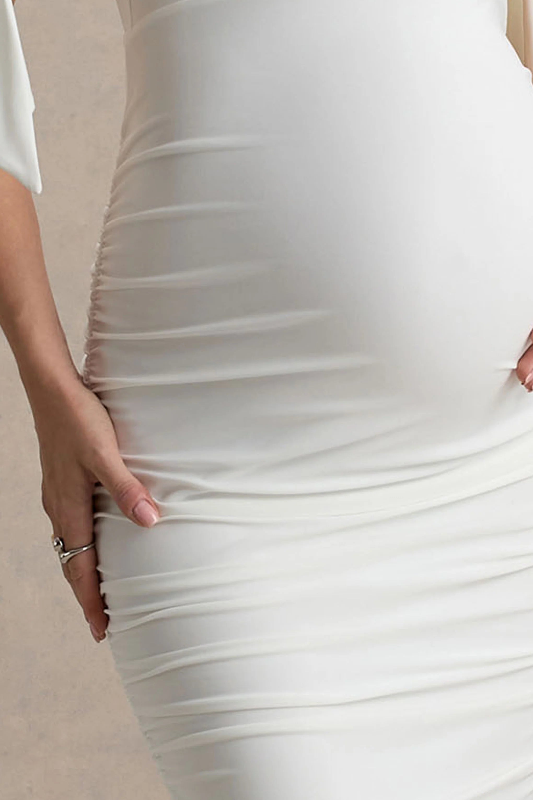 For an elegant yet playful look, Chandelier is the dress for you. This midi is cut in a bold white shade of our premium stretch jersey, for an ultra flattering and sculpting finish. Designed with an elegant bardot neckline with statement bow sleeves, this head turning piece is delicate and feminine. The ruched details are perfectly placed to shape your figure gorgeously. For your next special occasion Chandelier is the perfect choice.
