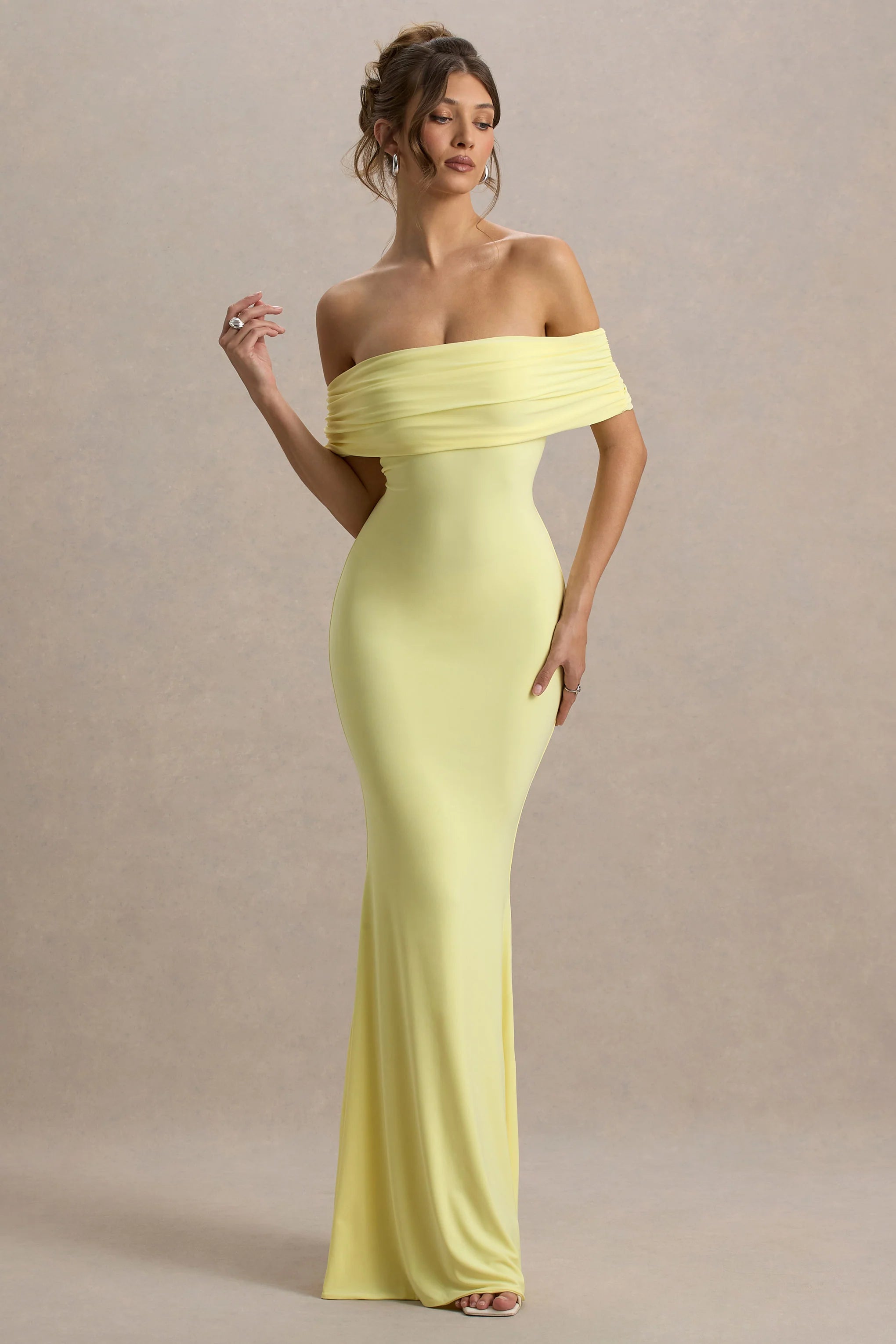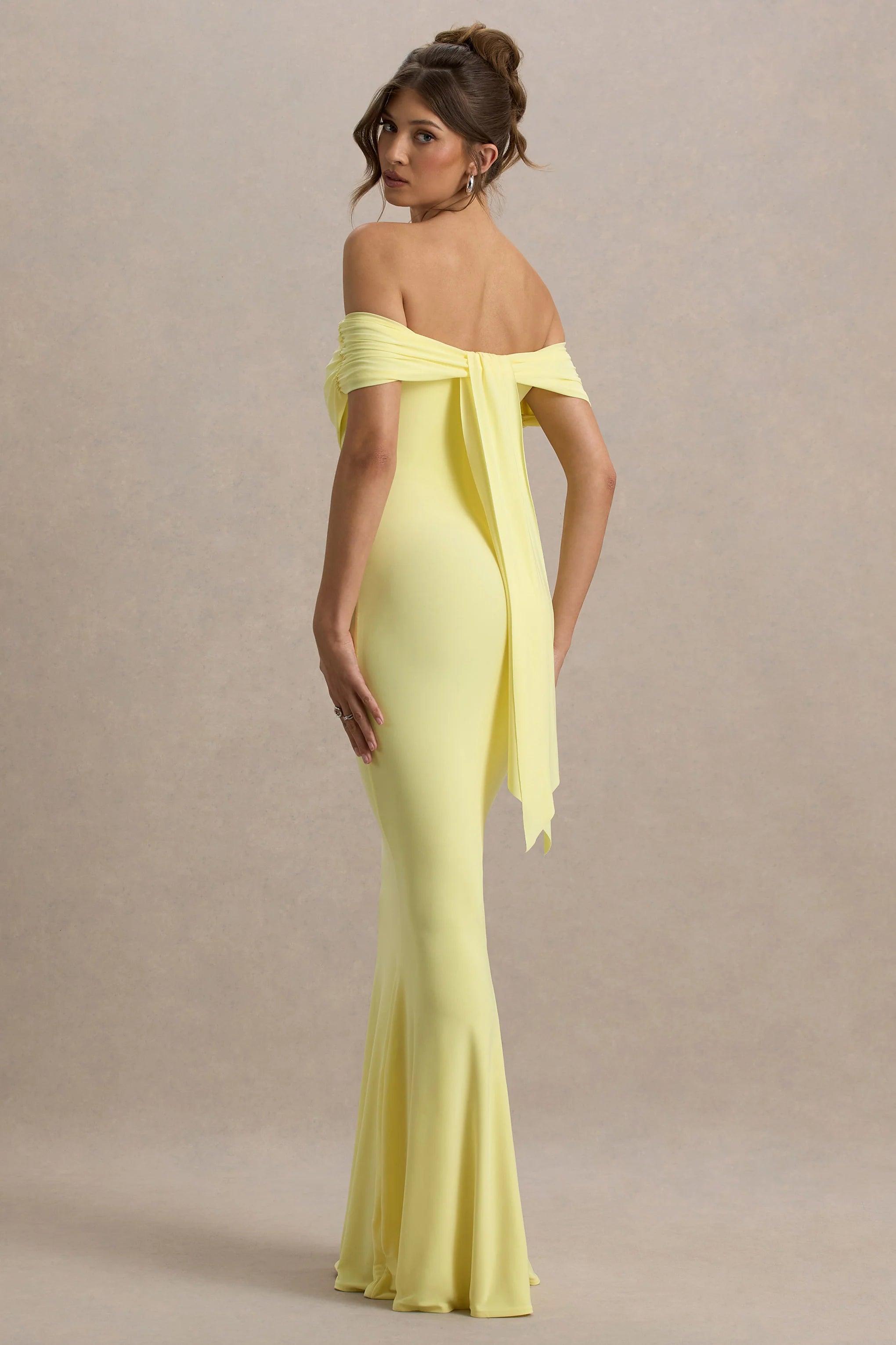 Curate a wardrobe of timeless pieces starting with Cloe. Perfect for that upcoming wedding, this formal maxi dress arrives in a soft lemon hue of our premium stretch jersey renowned for its sculpting abilities. Complete with an elegant bardot neckline and self-tie back, keep Cloe at the forefront with a sleek bun and diamante earrings.