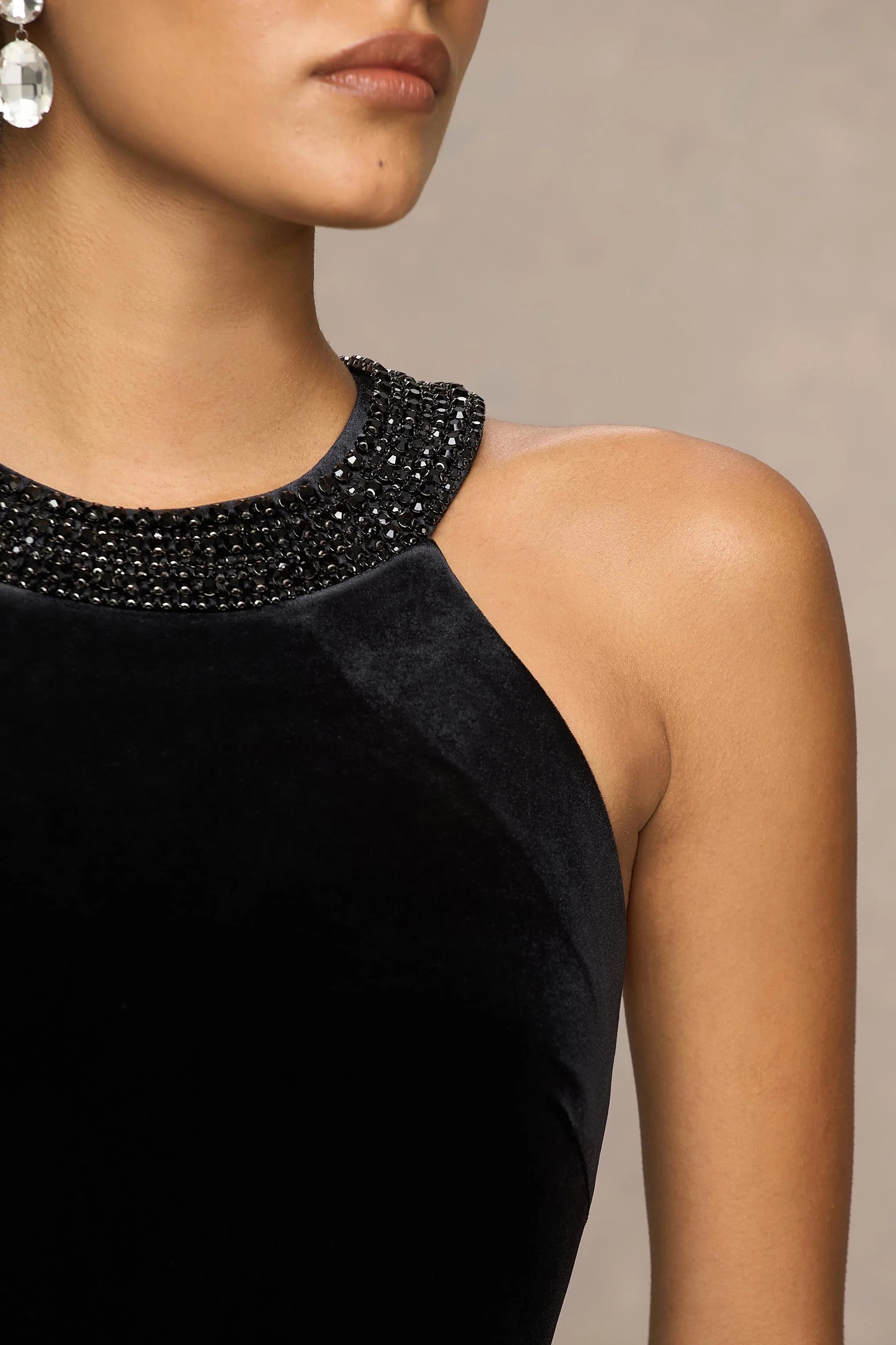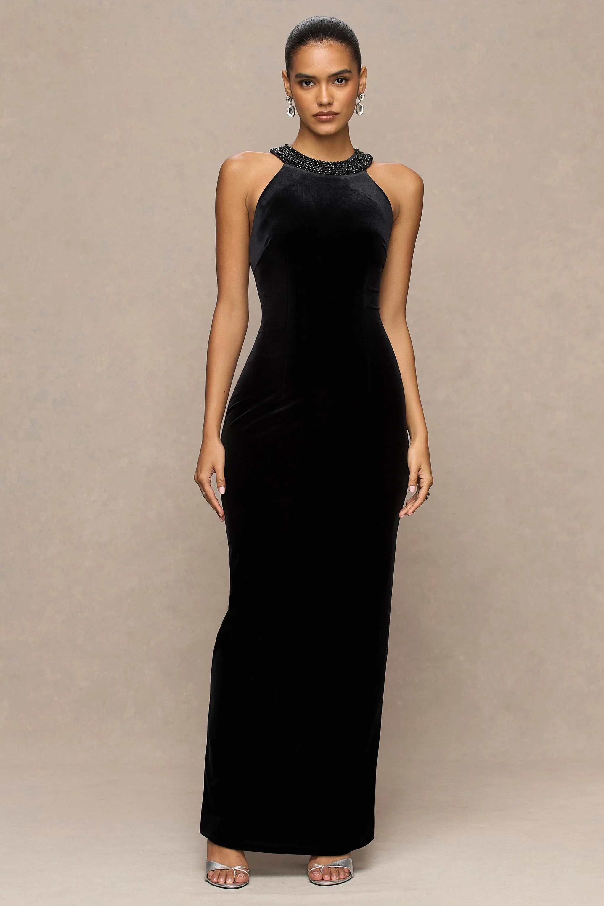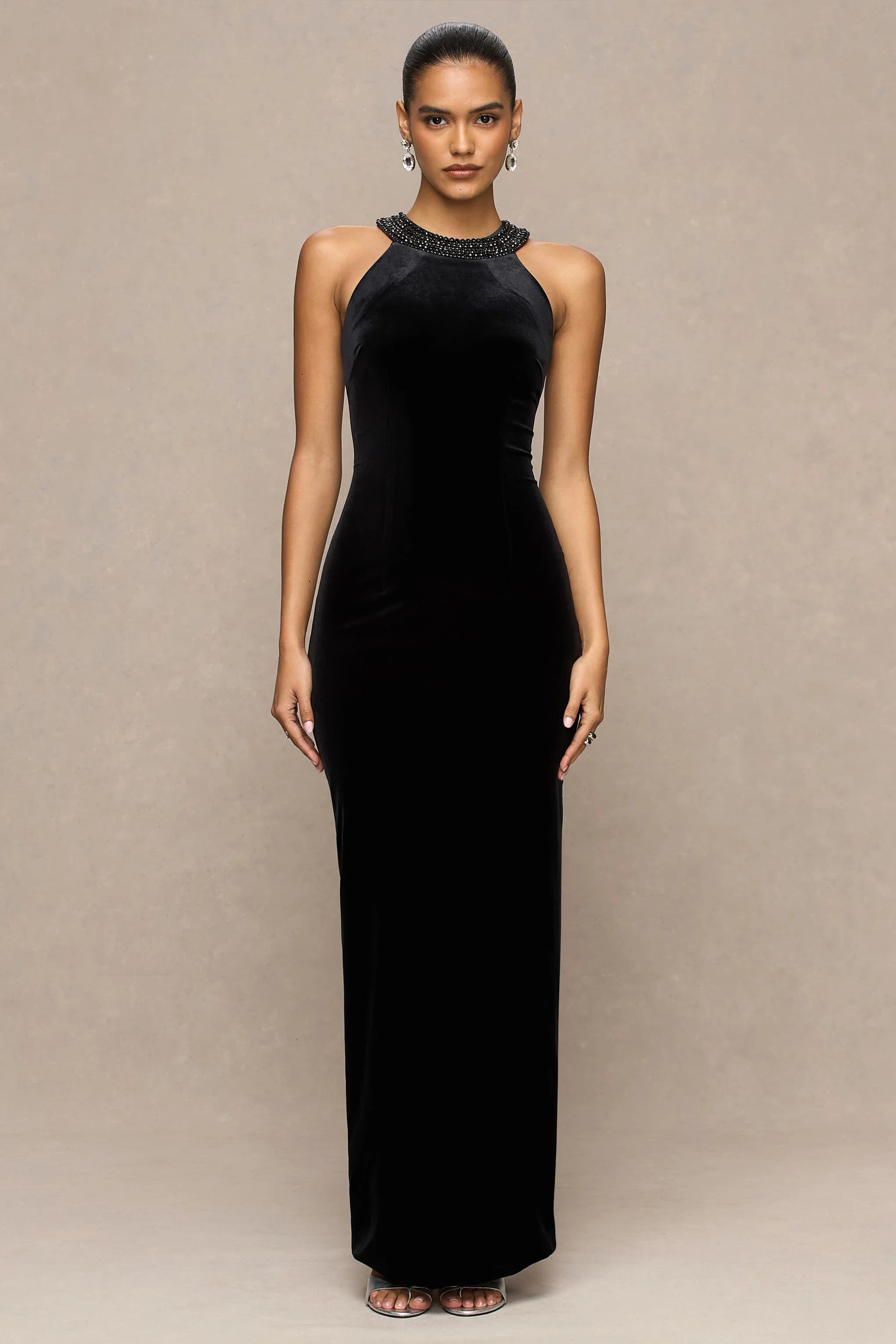 Indulge in timeless sophistication with Darya, a gown that radiates luxury and allure. Crafted in our premium black velvet, this maxi-length design is the epitome of evening elegance. An embellished high neckline brings opulent detail, while the centre-back split adds a subtle touch of drama. Darya is the definition of refined glamour, perfect for all dressed up moments this season.