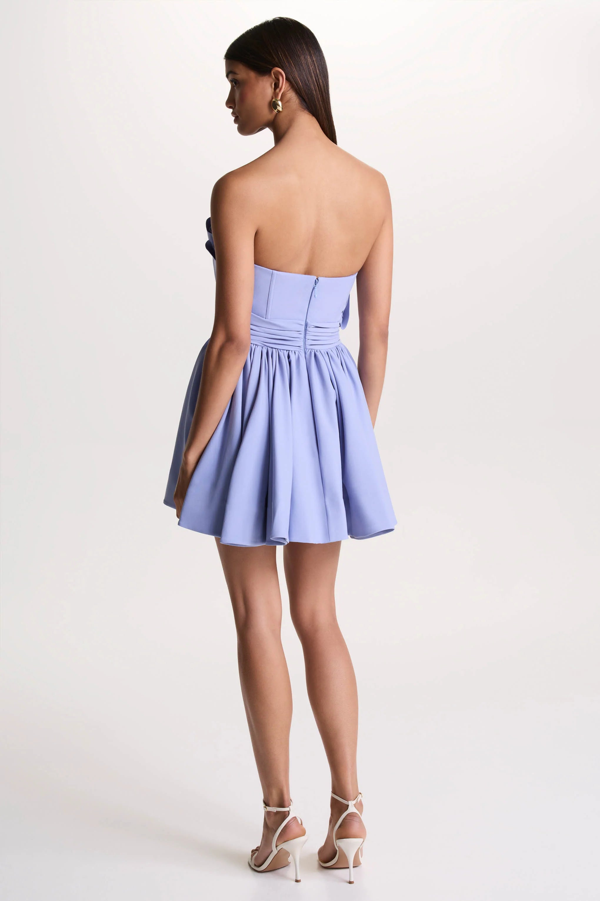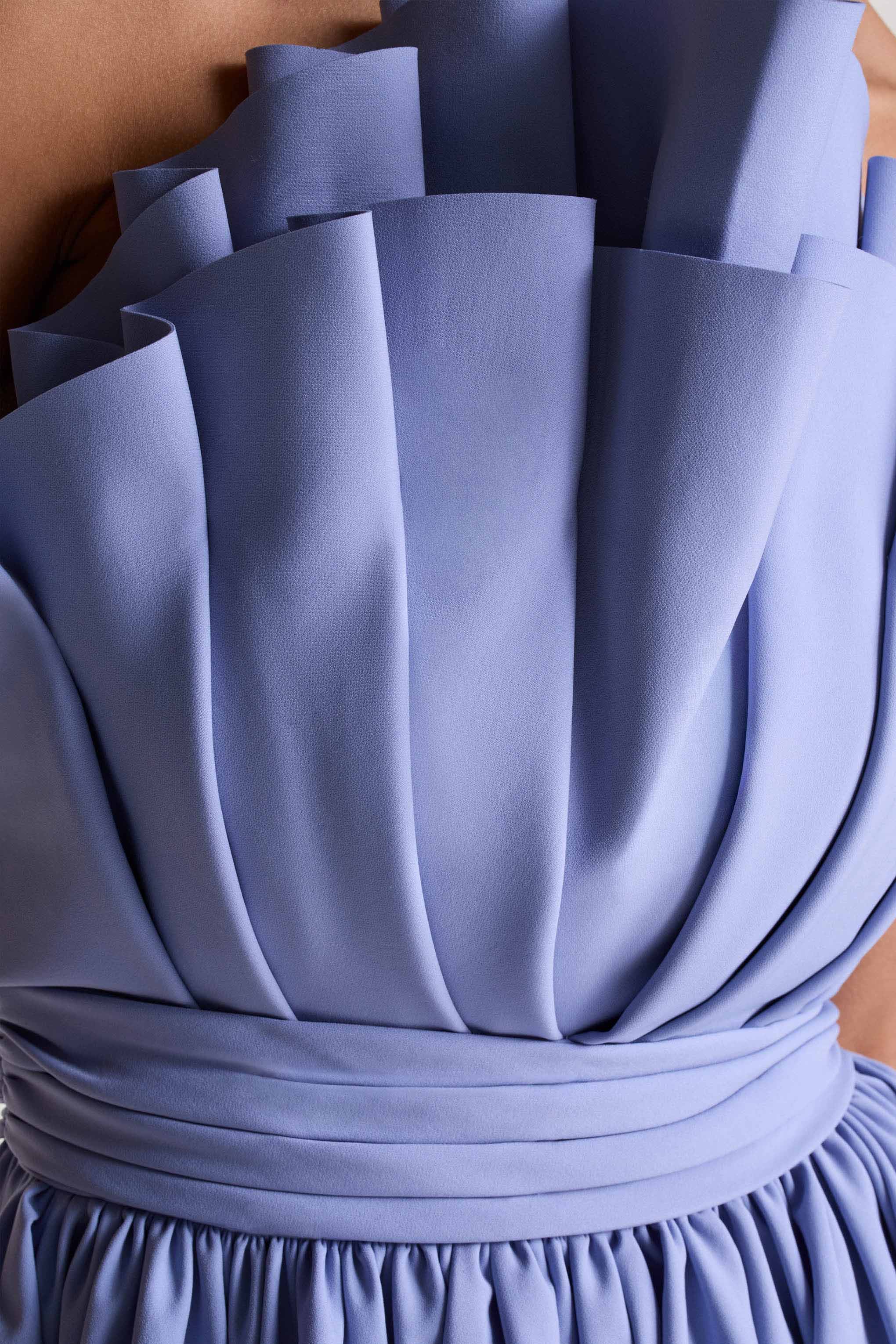 Playful, polished, and ready to make an entrance, meet Distinguished. Crafted in our premium stretch crepe in a soft powder blue, this ultra-flattering mini dress is designed to steal the spotlight. With its boned bodice, striking asymmetric neckline and dramatic ruffled detailing, Distinguished brings a high-fashion edge to any occasion. Finished with a gathered waist and skater skirt that adds volume and movement to this show-stopper. From rooftop cocktails to summer weddings, this mini is your go to for statement moments.