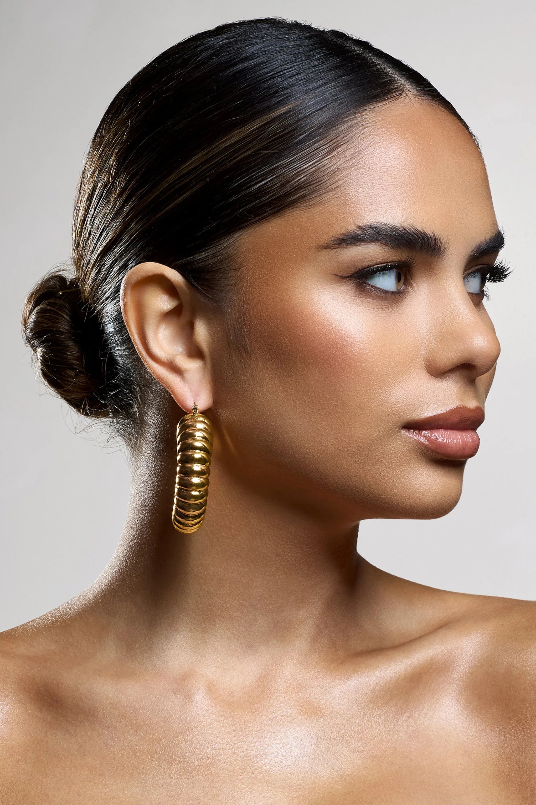Refresh your jewellery box with a statement style like Dover. Defined by their chunky ribbed design, these gold hoop earrings are perfect for your night girls night out.