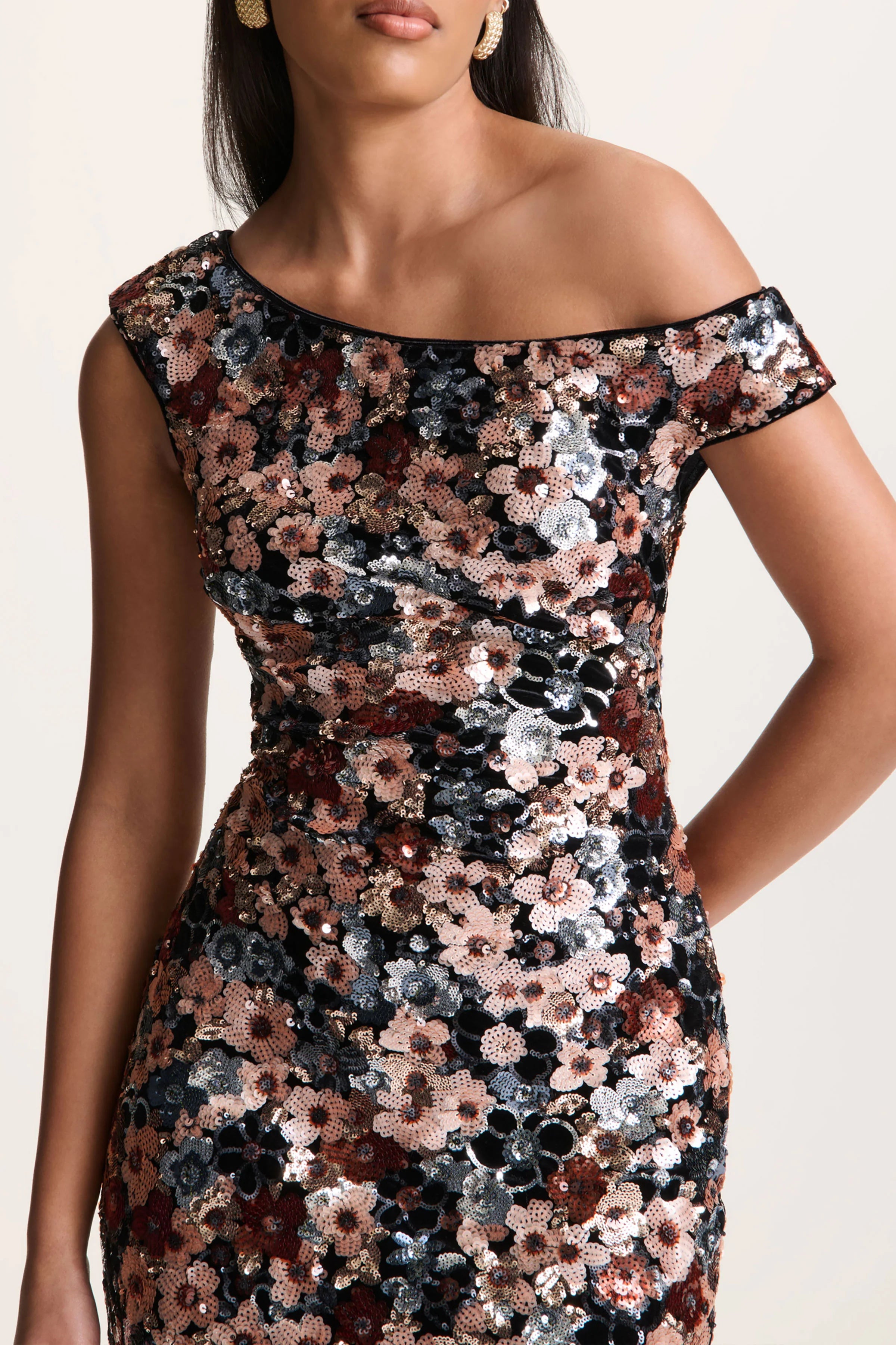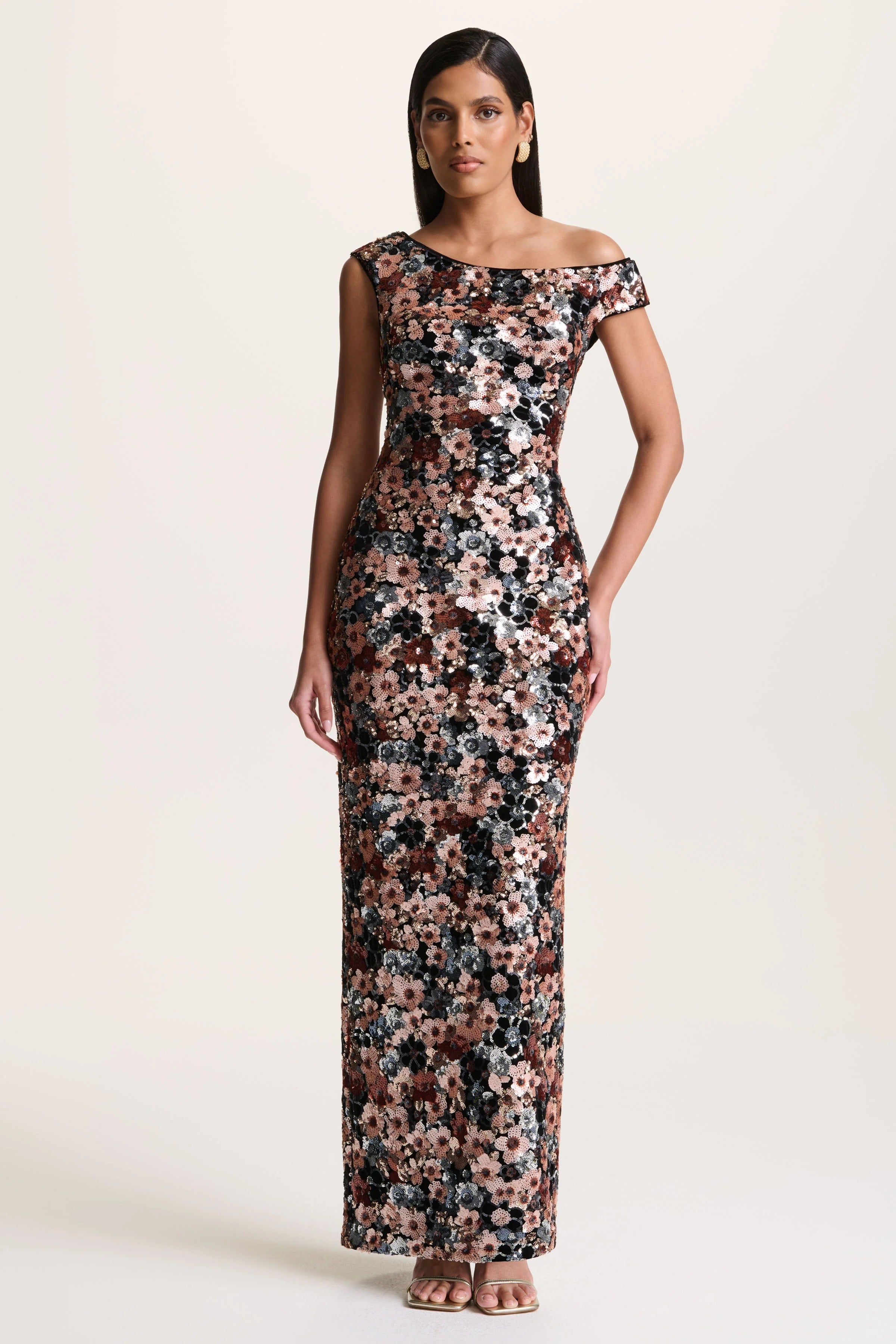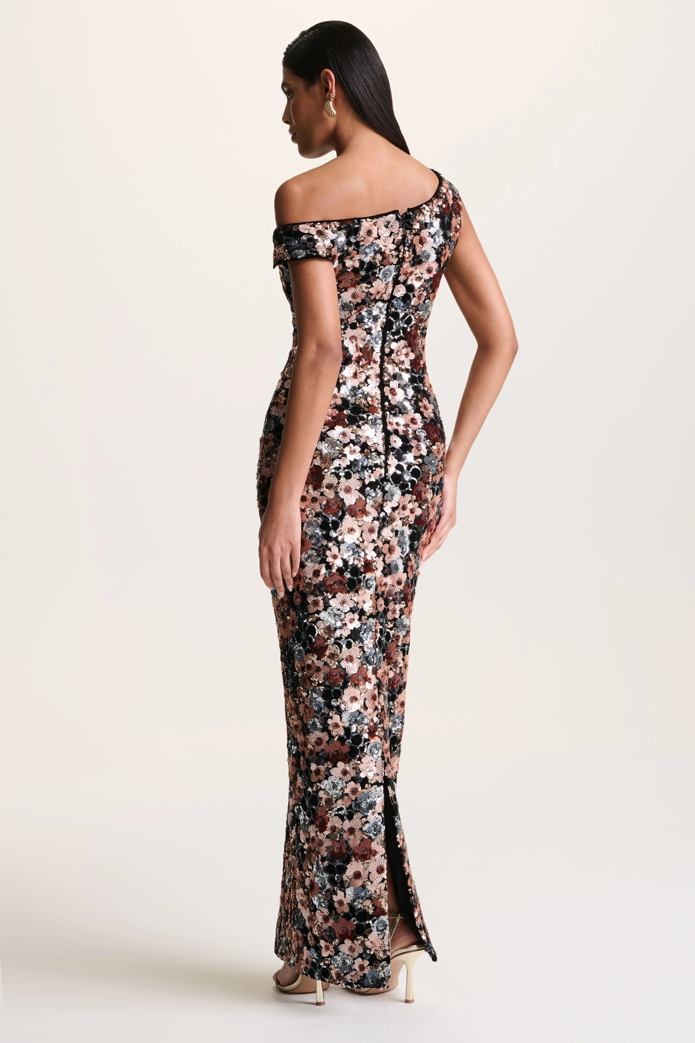 Make way for Electric, a statement blend of elegance and drama. Crafted from our premium velvet, this maxi dress is brought to life with shimmering embellished floral detailing that catches every light. The asymmetric neckline adds a modern edge, while the centre-back split allows for ease of movement with a sultry finish. Electric is bold, opulent, and made for unforgettable nights.