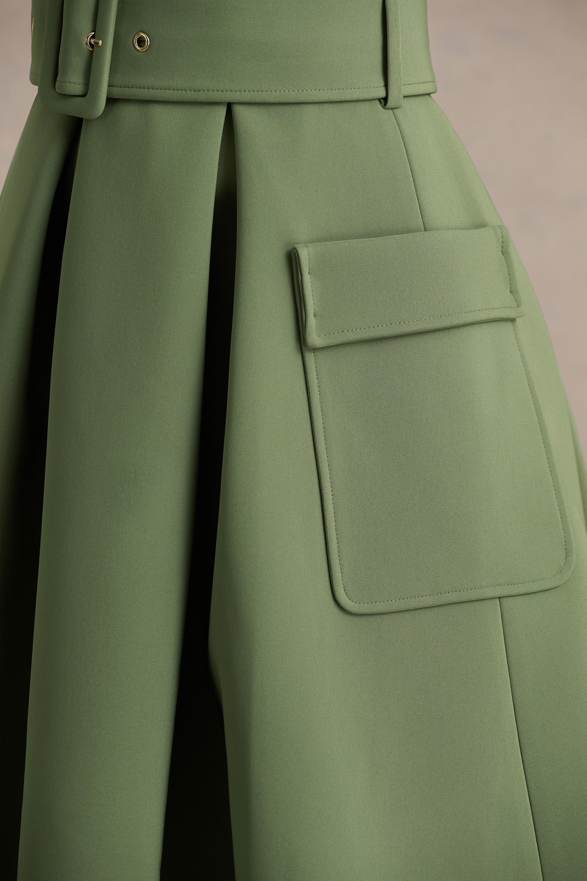 Say hello to Elisia, a chic essential that effortlessly blends comfort and style. Made from our premium stretch crepe in a flattering olive hue, this midi silhouette drapes beautifully to highlight your shape. Designed with a crew neckline for timeless appeal, Elisia features a belt detail to cinch the waist and pocket detailing polished finish. Perfect for elevating your everyday wardrobe.