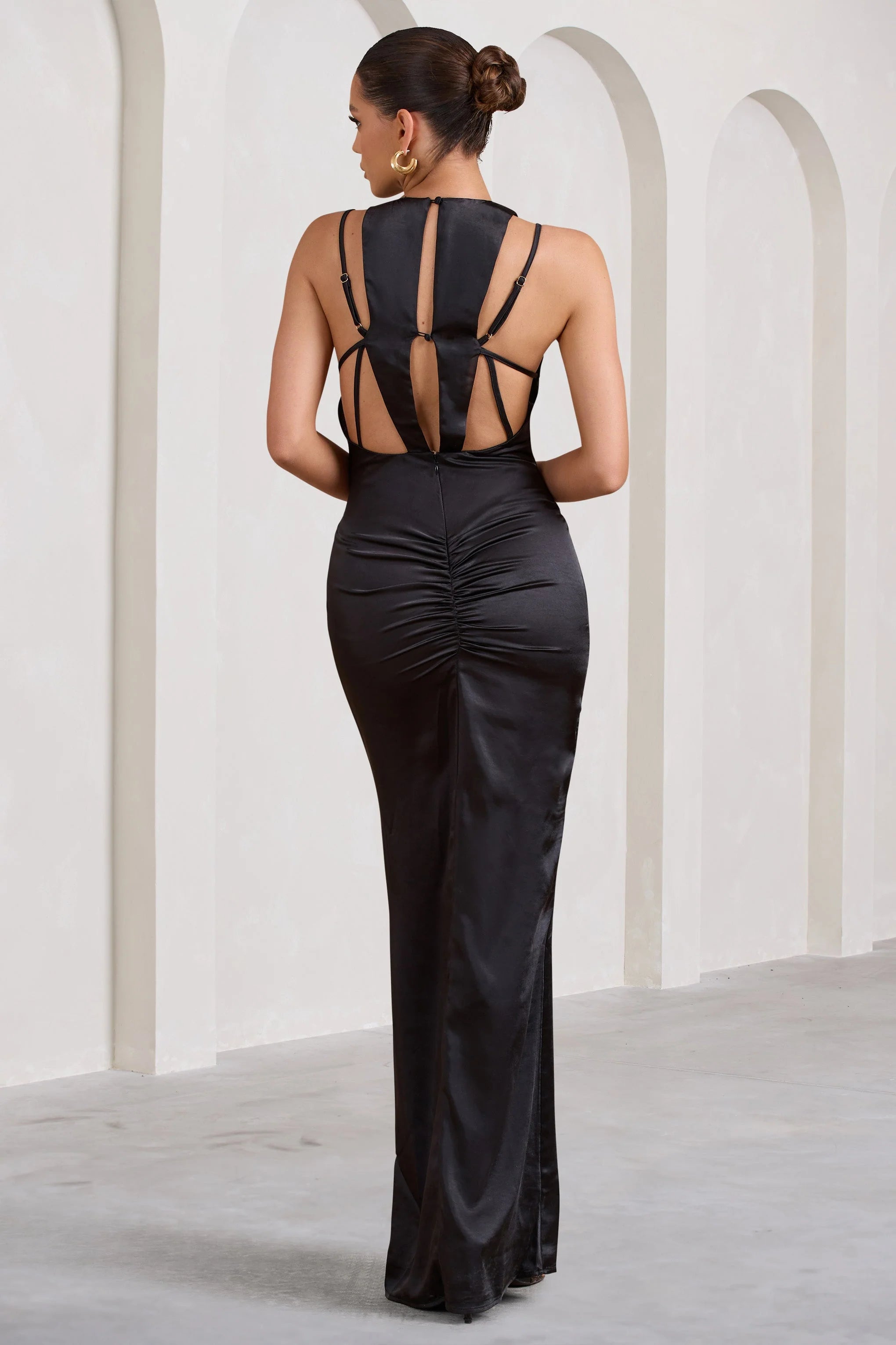 Fabulous is an understatement for our ultra-feminine Emery maxi dress. Designed in our lustrous satin fabric in a classy black shade, this sophisticated dress is super flattering with its deep plunge neckline revealing your elegant decolletage. Make an entrance at your next black-tie event, VIP party or gala with this exquisite design. Stunning is an understatement for this gorgeous look!