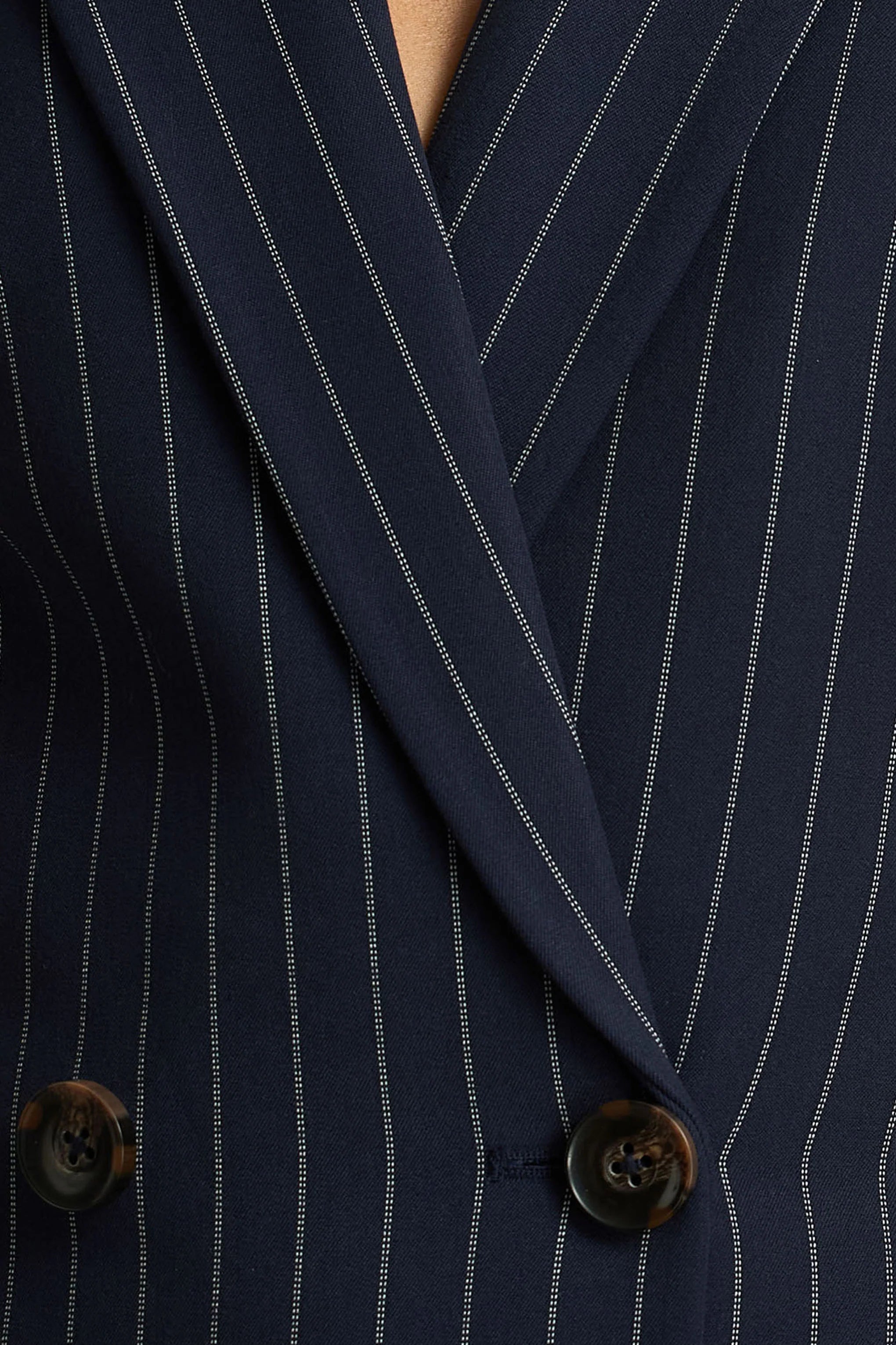 Premium crepe in Navy Pinstripe (79% Polyester, 17% Viscose, 4 % Elastane)